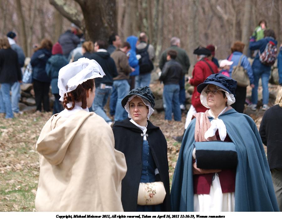 Picture #10: Women reenactors Thumb: 450x338, 45,487 bytes (45K) Small: 900x698, 101,732 bytes (100K), (html file) Copyright, Michael Meissner 2011, All rights reserved Olympus E-3 camera with Olympus 50-200mm f/2.8-3.5 lens f/4.5, ISO 100, 1/320 sec, 55.0mm, auto mode, natural color, SHQ, matrix metering, IS1 (All Direction Shake IS) 35mm equivalent focal length 110.0mm Programs used: raw therapee Taken by Michael Meissner on April 16, 2011 10:32:34 Last modified on April 23, 2011 at 09:21 |