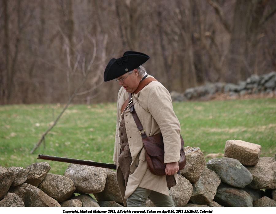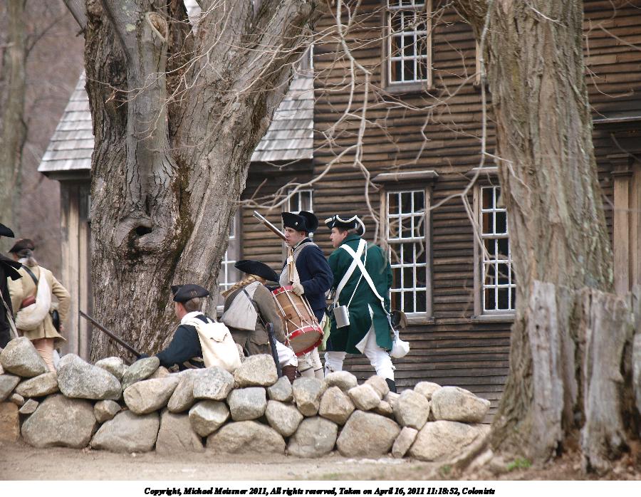 Picture #78: Colonists #8 Thumb: 450x338, 62,840 bytes (62K) Small: 900x698, 182,420 bytes (179K), (html file) Copyright, Michael Meissner 2011, All rights reserved Olympus E-3 camera with Olympus 50-200mm f/2.8-3.5 lens f/4.0, ISO 100, 1/250 sec, 50.0mm, auto mode, natural color, SHQ, matrix metering, IS1 (All Direction Shake IS) 35mm equivalent focal length 100.0mm Programs used: raw therapee Taken by Michael Meissner on April 16, 2011 12:08:23 Last modified on April 23, 2011 at 09:37 |