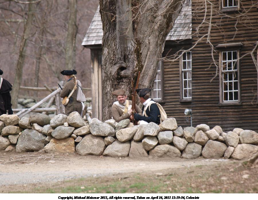 Picture #85: Colonists #14 Thumb: 450x338, 53,867 bytes (53K) Small: 900x698, 135,735 bytes (133K), (html file) Copyright, Michael Meissner 2011, All rights reserved Olympus E-3 camera with Olympus 50-200mm f/2.8-3.5 lens f/4.0, ISO 100, 1/250 sec, 57.0mm, auto mode, natural color, SHQ, matrix metering, IS1 (All Direction Shake IS) 35mm equivalent focal length 114.0mm Programs used: raw therapee Taken by Michael Meissner on April 16, 2011 12:09:29 Last modified on April 23, 2011 at 09:39 |