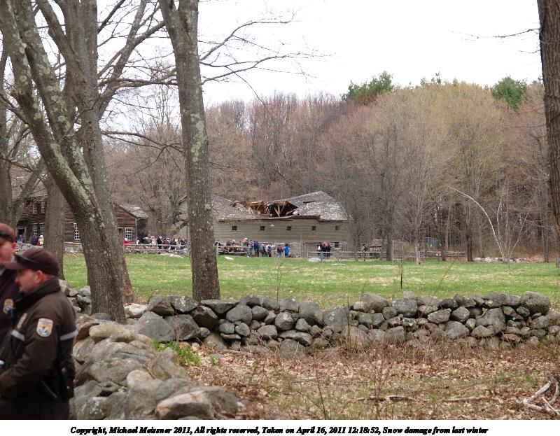 Picture #89: Snow damage from last winter Thumb: 480x360, 58,410 bytes (58K) Small: 800x623, 130,904 bytes (128K), (html file) Copyright, Michael Meissner 2011, All rights reserved Olympus E-1 camera with Olympus 14-54mm f/2.8-3.5 lens f/5.0, ISO 100, 1/200 sec, 45.0mm, auto mode, SHQ, matrix metering, bias 0.3, +2 contrast, +2 sharpening 35mm equivalent focal length 90.0mm Programs used: raw therapee Taken by Michael Meissner on April 16, 2011 12:18:52 Last modified on April 23, 2011 at 09:40 |