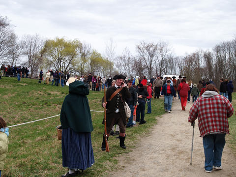 Picture #6: Colonists getting into place #2 Thumb: 450x338, 50,439 bytes (50K) Small: 900x698, 164,045 bytes (161K), (html file) Copyright, Michael Meissner 2011, All rights reserved Olympus E-3 camera with Olympus 50-200mm f/2.8-3.5 lens f/4.0, ISO 100, 1/250 sec, 56.0mm, auto mode, natural color, SHQ, matrix metering, IS1 (All Direction Shake IS) 35mm equivalent focal length 112.0mm Programs used: raw therapee Taken by Michael Meissner on April 16, 2011 08:39:44 Last modified on April 20, 2011 at 19:33 |