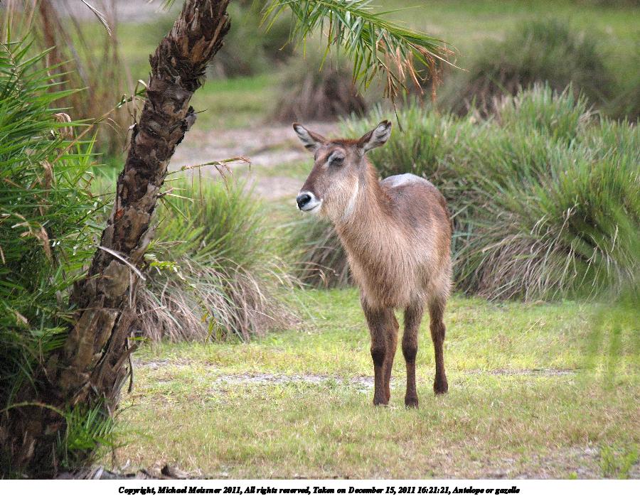 Picture #63: Antelope or gazelle #2 900x698, 165,366 bytes (162K), (html file) Copyright, Michael Meissner 2011, All rights reserved Olympus E-3 camera with Olympus 50-200mm f/2.8-3.5 lens f/3.5, ISO 640, 1/250 sec, 200.0mm, auto mode, vivid color, matrix metering, IS1 (All Direction Shake IS), noise filter low 35mm equivalent focal length 401.0mm Programs used: adjusttime, crop, raw therapee Taken by Michael Meissner on December 15, 2011 16:21:21 Last modified on February 19, 2012 at 14:21 |