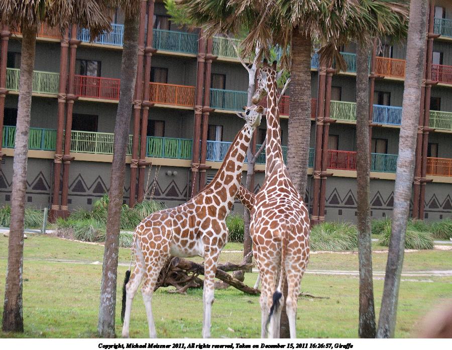 Picture #110: Christmas at the Animal Kingdom Lodge 675x923, 173,759 bytes (170K), (html file) Copyright, Michael Meissner 2011, All rights reserved Olympus E-3 camera with Olympus 11-22mm f/2.8-3.5 lens f/2.8, ISO 500, 1/60 sec, 11.0mm, auto mode, vivid color, matrix metering, IS1 (All Direction Shake IS), noise filter low 35mm equivalent focal length 22.0mm Programs used: adjusttime, raw therapee Taken by Michael Meissner on December 20, 2011 07:44:28 Last modified on February 09, 2012 at 00:14 |
