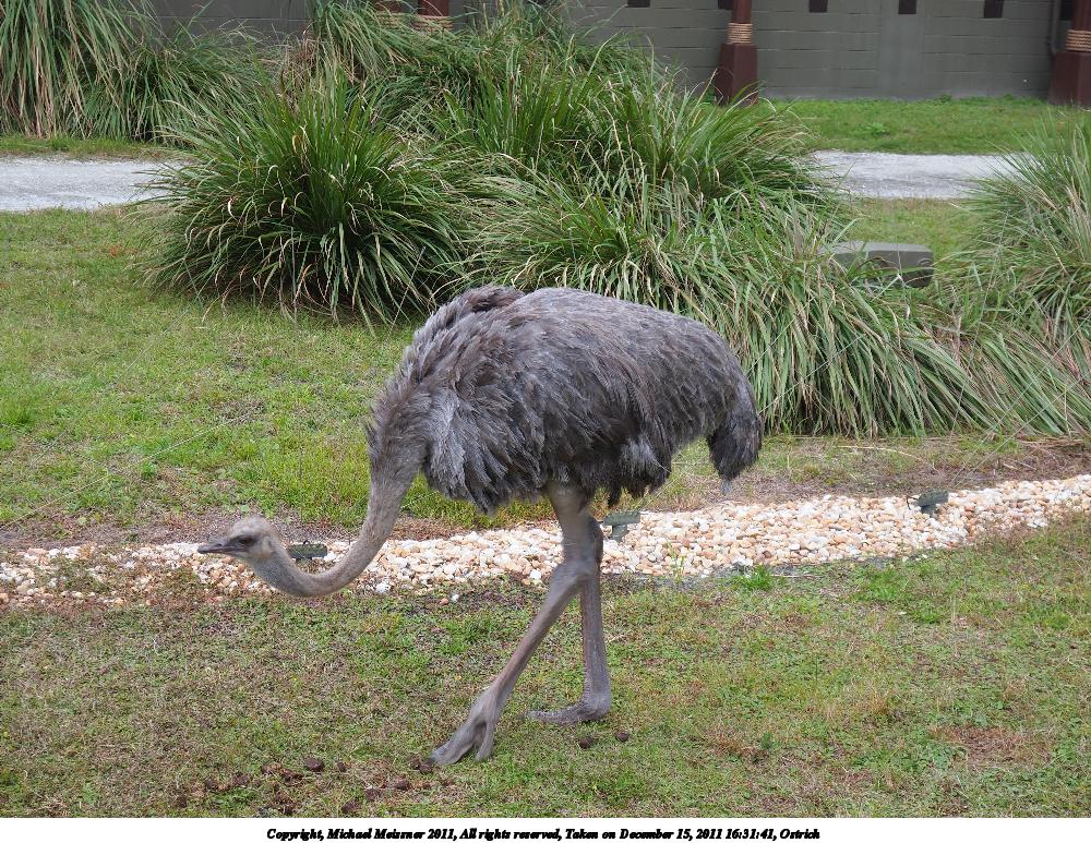 Picture #44: Ostrich 1000x773, 287,533 bytes (281K), (html file) Copyright, Michael Meissner 2011, All rights reserved Olympus E-5 camera with Olympus 14-54mm f/2.8-3.5 lens f/3.3, ISO 200, 1/80 sec, 38.0mm, auto mode, vivid color, matrix metering, IS1 (All Direction Shake IS) 35mm equivalent focal length 76.0mm Programs used: adjusttime, crop, raw therapee Taken by Michael Meissner on December 15, 2011 16:31:41 Last modified on February 19, 2012 at 14:28 |