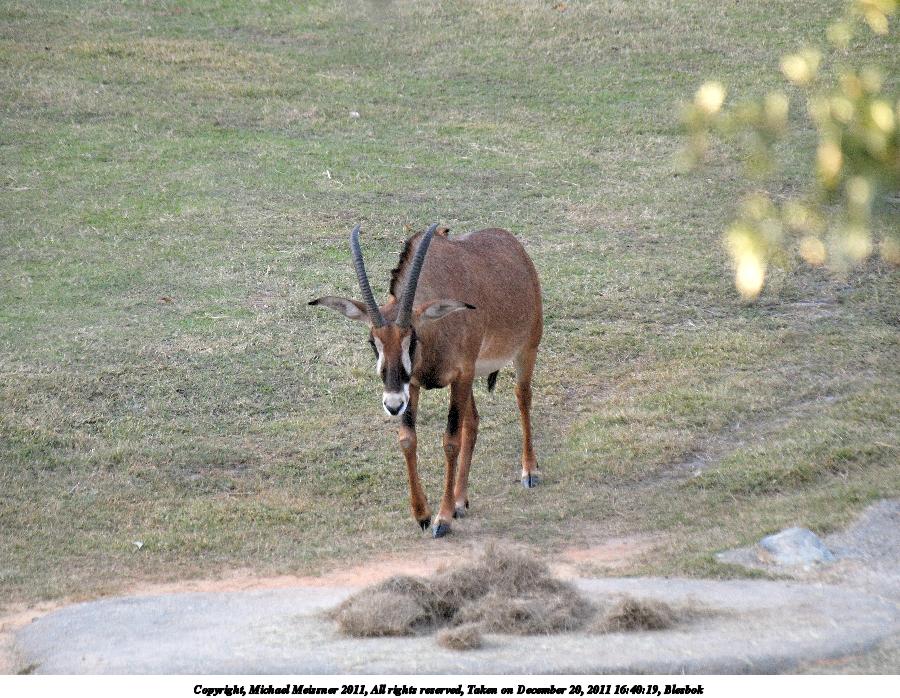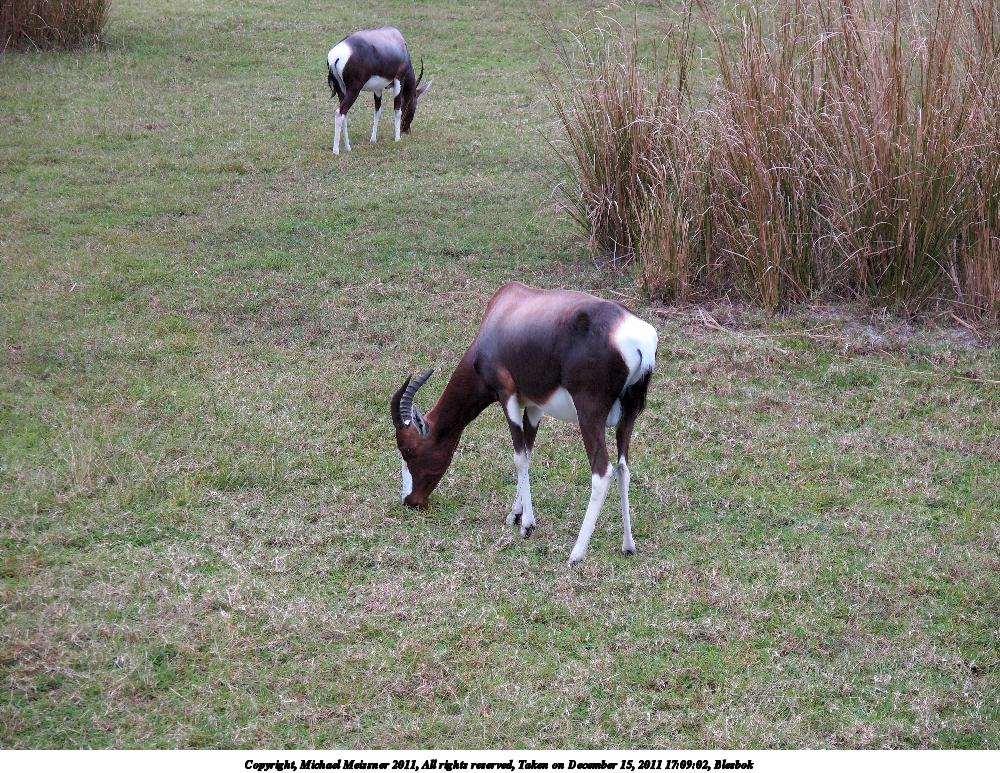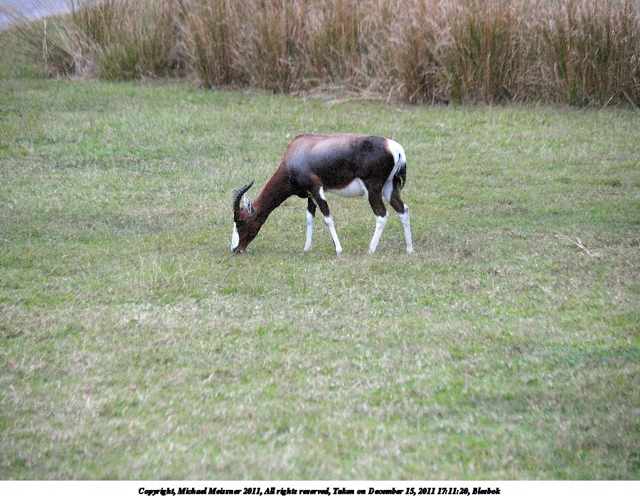 Picture #4: Blesbok #2 1000x773, 280,252 bytes (274K), (html file) Copyright, Michael Meissner 2011, All rights reserved Olympus E-5 camera with Olympus 14-54mm f/2.8-3.5 lens f/3.4, ISO 500, 1/100 sec, 47.0mm, auto mode, vivid color, matrix metering, IS1 (All Direction Shake IS) 35mm equivalent focal length 94.0mm Programs used: adjusttime, crop, raw therapee Taken by Michael Meissner on December 15, 2011 17:09:02 Last modified on February 19, 2012 at 15:42 |