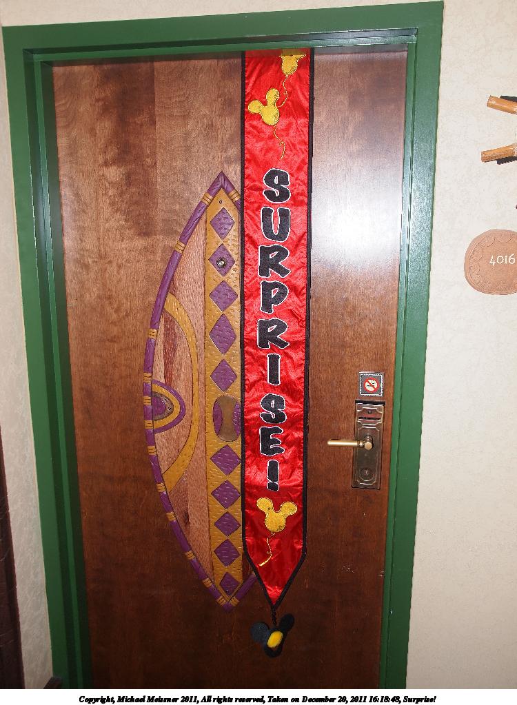 Picture #106: Surprise! 750x1023, 147,101 bytes (144K), (html file) Copyright, Michael Meissner 2011, All rights reserved Olympus E-5 camera with Olympus 14-54mm f/2.8-3.5 lens f/2.8, ISO 200, flash (+0.3 flash compensation), 1/60 sec, 14.0mm, auto mode, vivid color, matrix metering, IS1 (All Direction Shake IS) 35mm equivalent focal length 28.0mm Programs used: adjusttime, raw therapee Taken by Michael Meissner on December 20, 2011 16:18:48 Last modified on February 14, 2012 at 08:26 |