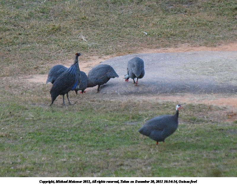 Picture #95: Guinea fowl #2 900x698, 202,910 bytes (199K), (html file) Copyright, Michael Meissner 2011, All rights reserved Olympus E-3 camera with Olympus 50-200mm f/2.8-3.5 lens and Olympus EC-14 (1.4x) f/4.9, ISO 500, 1/250 sec, 283.0mm, auto mode, vivid color, matrix metering, auto + manual focus, IS1 (All Direction Shake IS), noise filter low 35mm equivalent focal length 567.0mm, EC-14 Programs used: adjusttime, raw therapee Taken by Michael Meissner on December 20, 2011 16:39:27 Last modified on February 14, 2012 at 08:38 |