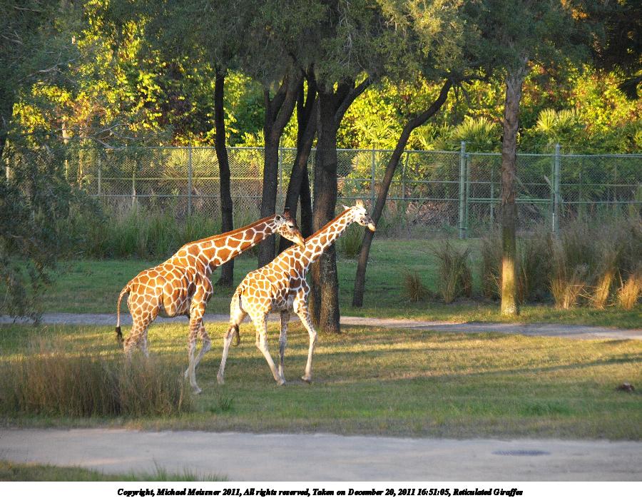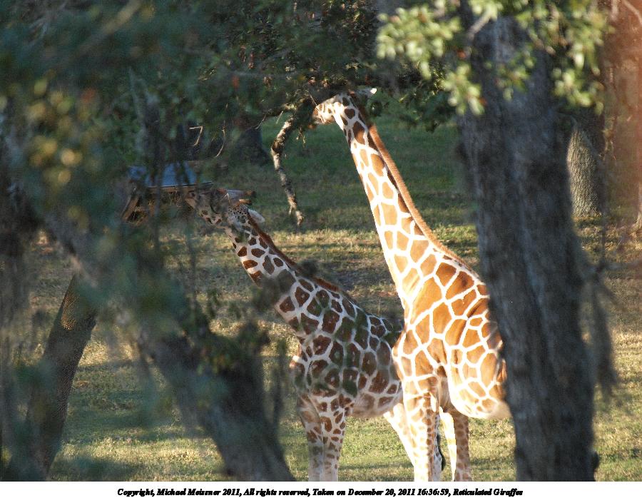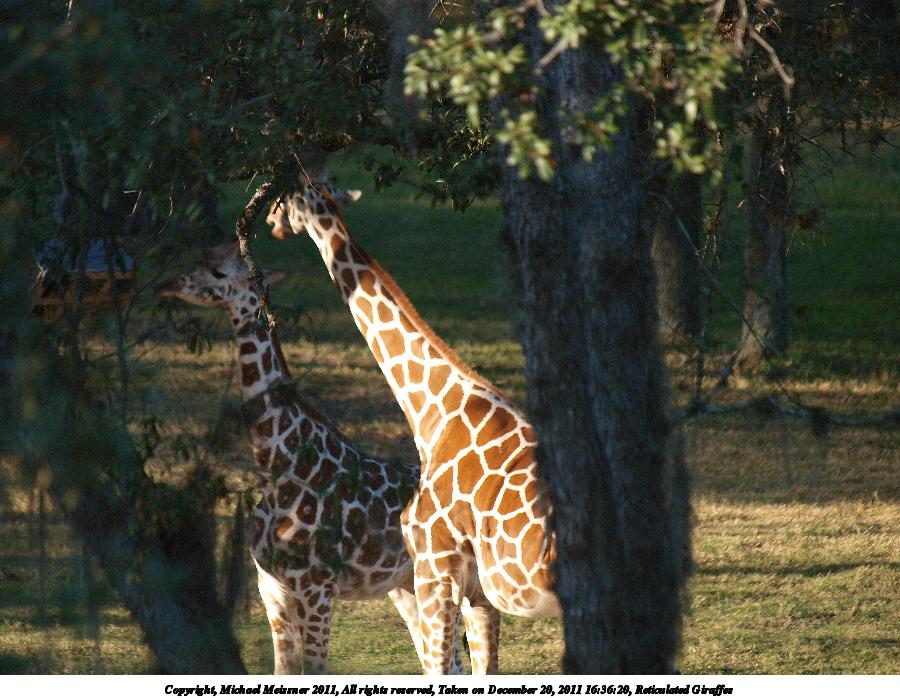 Picture #86: Reticulated Giraffes #4 900x698, 162,477 bytes (159K), (html file) Copyright, Michael Meissner 2011, All rights reserved Olympus E-3 camera with Olympus 50-200mm f/2.8-3.5 lens and Olympus EC-14 (1.4x) f/4.0, ISO 400, 1/250 sec, 117.0mm, auto mode, vivid color, matrix metering, auto + manual focus, IS1 (All Direction Shake IS), noise filter low 35mm equivalent focal length 234.0mm, EC-14 Programs used: adjusttime, raw therapee Taken by Michael Meissner on December 20, 2011 16:51:11 Last modified on February 14, 2012 at 08:45 |