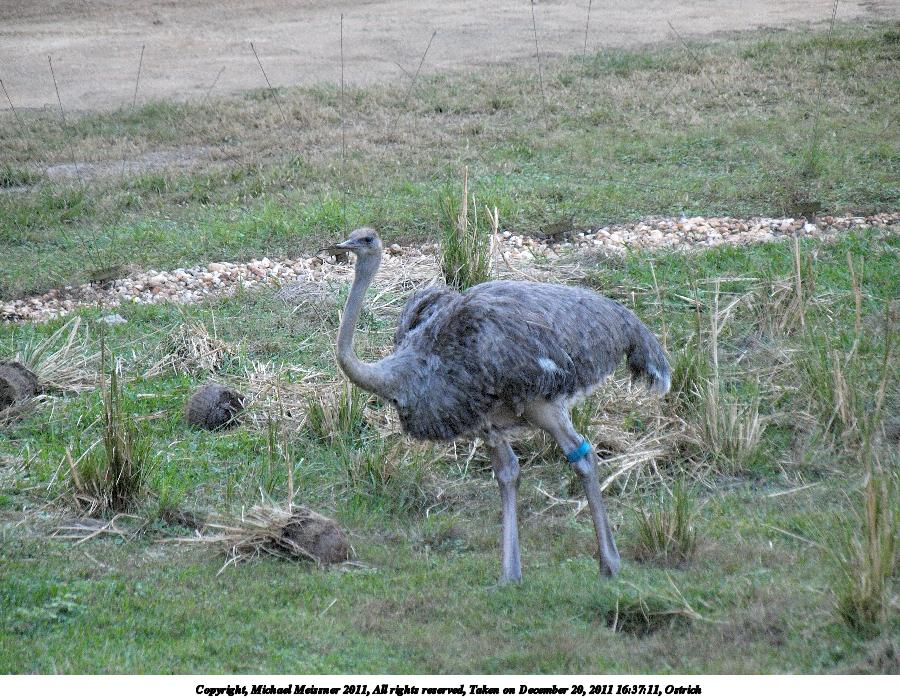 Picture #98: Ostrich 900x698, 186,673 bytes (183K), (html file) Copyright, Michael Meissner 2011, All rights reserved Olympus E-3 camera with Olympus 50-200mm f/2.8-3.5 lens and Olympus EC-14 (1.4x) f/5.0, ISO 1250, 1/250 sec, 283.0mm, auto mode, vivid color, matrix metering, auto + manual focus, IS1 (All Direction Shake IS), noise filter low 35mm equivalent focal length 567.0mm, EC-14 Programs used: adjusttime, raw therapee Taken by Michael Meissner on December 20, 2011 16:37:11 Last modified on February 14, 2012 at 08:37 |