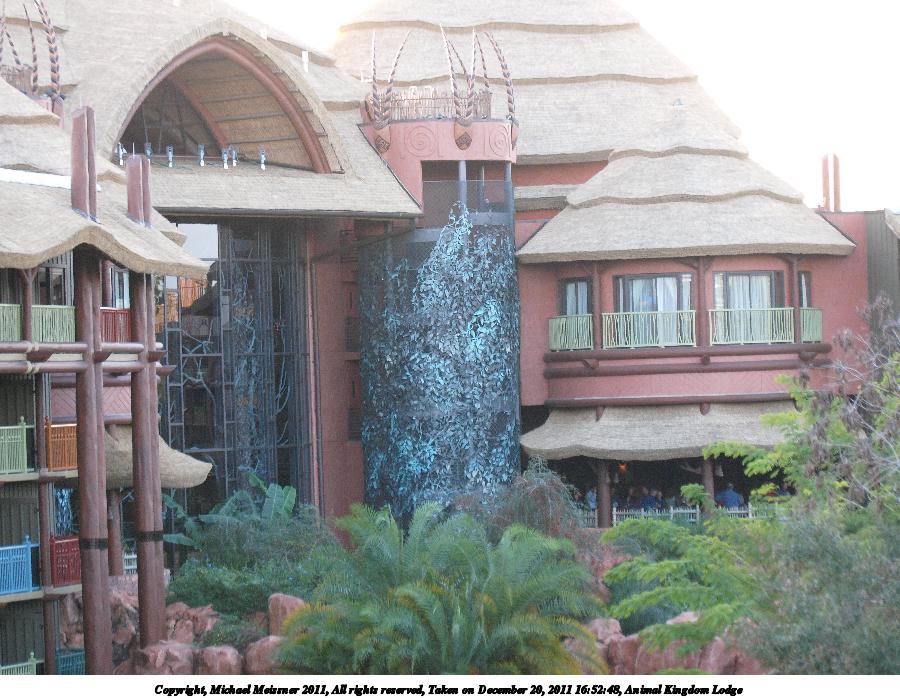 Picture #42: Back of the Animal Kingdom Lodge 1000x773, 197,582 bytes (193K), (html file) Copyright, Michael Meissner 2011, All rights reserved Olympus E-5 camera with Olympus 14-54mm f/2.8-3.5 lens f/2.8, ISO 200, 1/60 sec, 14.0mm, auto mode, vivid color, matrix metering, IS1 (All Direction Shake IS) 35mm equivalent focal length 28.0mm Programs used: adjusttime, crop, raw therapee Taken by Michael Meissner on December 15, 2011 16:33:27 Last modified on February 19, 2012 at 14:30 |