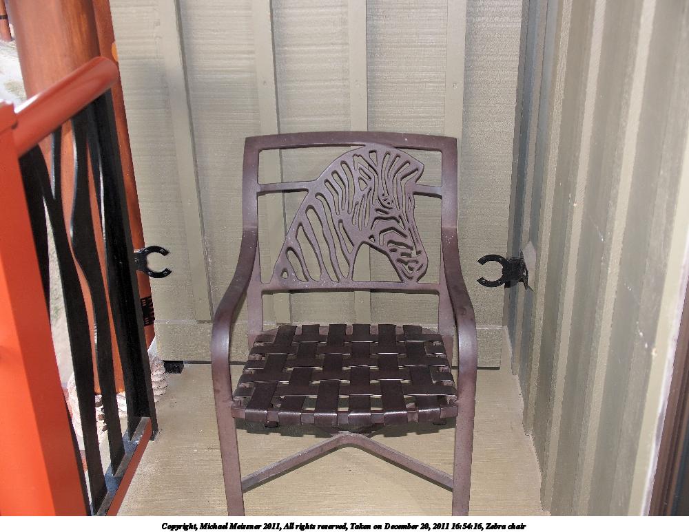 Picture #81: Zebra chair 1000x773, 130,489 bytes (128K), (html file) Copyright, Michael Meissner 2011, All rights reserved Olympus E-5 camera with Olympus 14-54mm f/2.8-3.5 lens f/2.9, ISO 200, flash (+0.3 flash compensation), 1/60 sec, 20.0mm, auto mode, vivid color, matrix metering, IS1 (All Direction Shake IS) 35mm equivalent focal length 40.0mm Programs used: adjusttime, raw therapee Taken by Michael Meissner on December 20, 2011 16:54:16 Last modified on February 14, 2012 at 08:46 |