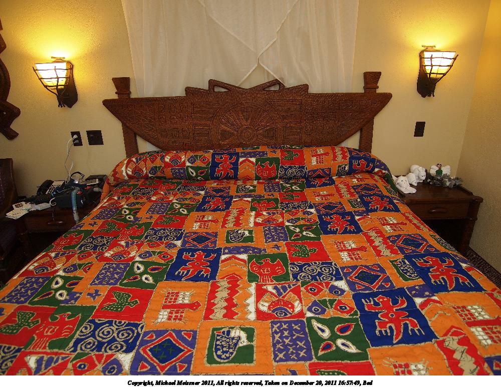 Picture #78: Bed 1000x773, 205,013 bytes (201K), (html file) Copyright, Michael Meissner 2011, All rights reserved Olympus E-5 camera with Olympus 11-22mm lens f/2.8, ISO 200, Metz 48 flash (+0.3 flash compensation), 1/60 sec, 11.0mm, auto mode, vivid color, matrix metering, IS1 (All Direction Shake IS) 35mm equivalent focal length 22.0mm Programs used: adjusttime, raw therapee Taken by Michael Meissner on December 20, 2011 16:57:49 Last modified on February 14, 2012 at 08:48 |