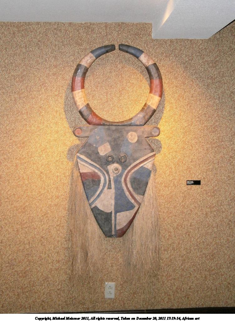 Picture #70: African art #8 1000x773, 157,094 bytes (154K), (html file) Copyright, Michael Meissner 2011, All rights reserved Olympus VG-120 camera f/3.1, ISO 125, flash, 1/40 sec, 6.4mm, auto mode, HQ, center weight metering 35mm equivalent focal length 36.0mm Programs used: raw therapee Taken by Michael Meissner on December 20, 2011 17:20:50 Last modified on February 14, 2012 at 08:51 |