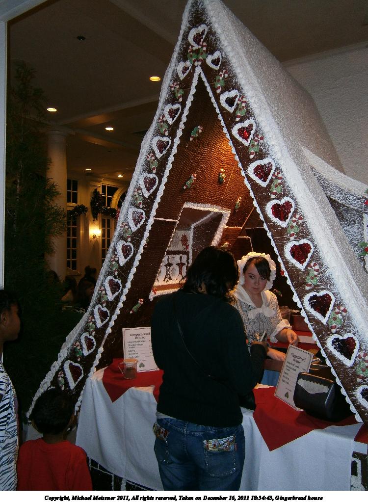 Picture #32: Gingerbread house #4 1000x773, 196,464 bytes (192K), (html file) Copyright, Michael Meissner 2011, All rights reserved Olympus E-P2 camera with Panasonic 20mm lens f/1.7, ISO 1600, 1/60 sec, 20.0mm, auto mode, vivid color, SHQ, center weight metering, IS1 (All Direction Shake IS), noise reduction auto, noise filter low 35mm equivalent focal length 40.0mm Programs used: noiseninja, raw therapee Taken by Michael Meissner on December 17, 2011 20:16:52 Last modified on February 15, 2012 at 23:58 |