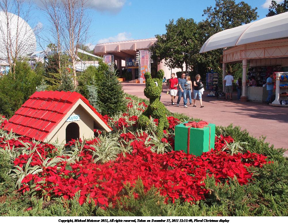 Picture #58: Floral Christmas display #6 1000x773, 291,171 bytes (285K), (html file) Copyright, Michael Meissner 2011, All rights reserved Olympus E-P2 camera with Olympus-m43 14-150mm f/4.0-5.6 lens f/9.0, ISO 200, 1/320 sec, 18.0mm, auto mode, vivid color, SHQ, center weight metering, IS1 (All Direction Shake IS), noise reduction auto, noise filter low 35mm equivalent focal length 36.0mm Programs used: raw therapee Taken by Michael Meissner on December 17, 2011 12:31:40 Last modified on February 15, 2012 at 23:31 |