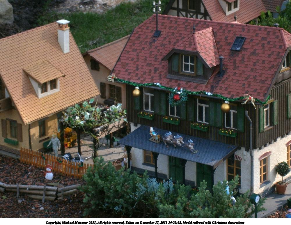 Picture #49: Model railroad with Christmas decorations #3 1000x773, 152,696 bytes (150K), (html file) Copyright, Michael Meissner 2011, All rights reserved Olympus VG-120 camera f/6.5, ISO 125, flash, 1/125 sec, 23.5mm, auto mode, HQ, center weight metering, macro 35mm equivalent focal length 130.0mm Programs used: raw therapee Taken by Michael Meissner on December 17, 2011 14:20:02 Last modified on February 15, 2012 at 23:36 |