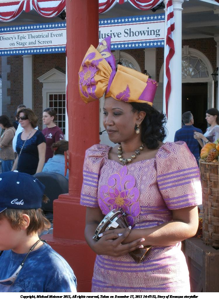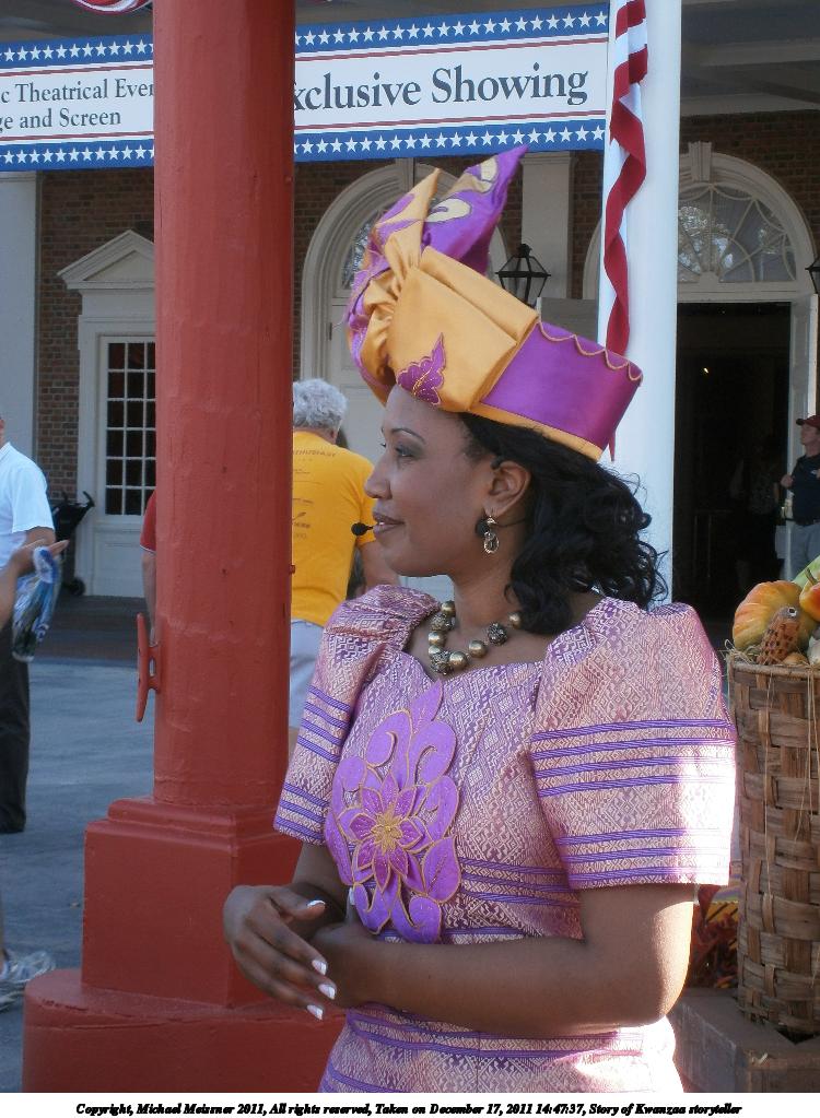 Picture #46: Story of Kwanzaa storyteller #2 750x1023, 158,121 bytes (155K), (html file) Copyright, Michael Meissner 2011, All rights reserved Olympus VG-120 camera f/4.9, ISO 80, 1/80 sec, 15.4mm, auto mode, HQ, center weight metering 35mm equivalent focal length 87.0mm Programs used: eog, raw therapee, rotate Taken by Michael Meissner on December 17, 2011 14:47:52 Last modified on February 15, 2012 at 23:38 |
