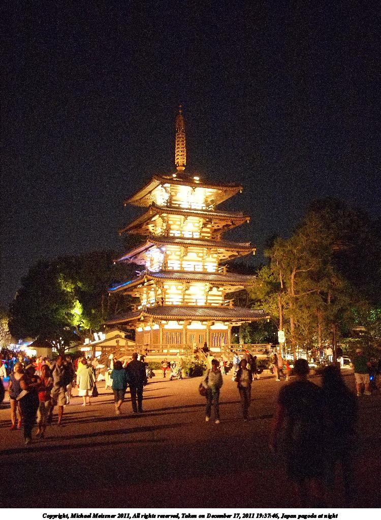 Picture #34: Japan pagoda at night 750x1023, 210,917 bytes (206K), (html file) Copyright, Michael Meissner 2011, All rights reserved Olympus E-P2 camera with Panasonic 20mm lens f/1.7, ISO 3200, 1/13 sec, 20.0mm, auto mode, vivid color, SHQ, center weight metering, IS1 (All Direction Shake IS), noise reduction auto, noise filter low 35mm equivalent focal length 40.0mm Programs used: rawtherapee, rotate Taken by Michael Meissner on December 17, 2011 19:37:46 Last modified on February 15, 2012 at 23:56 |