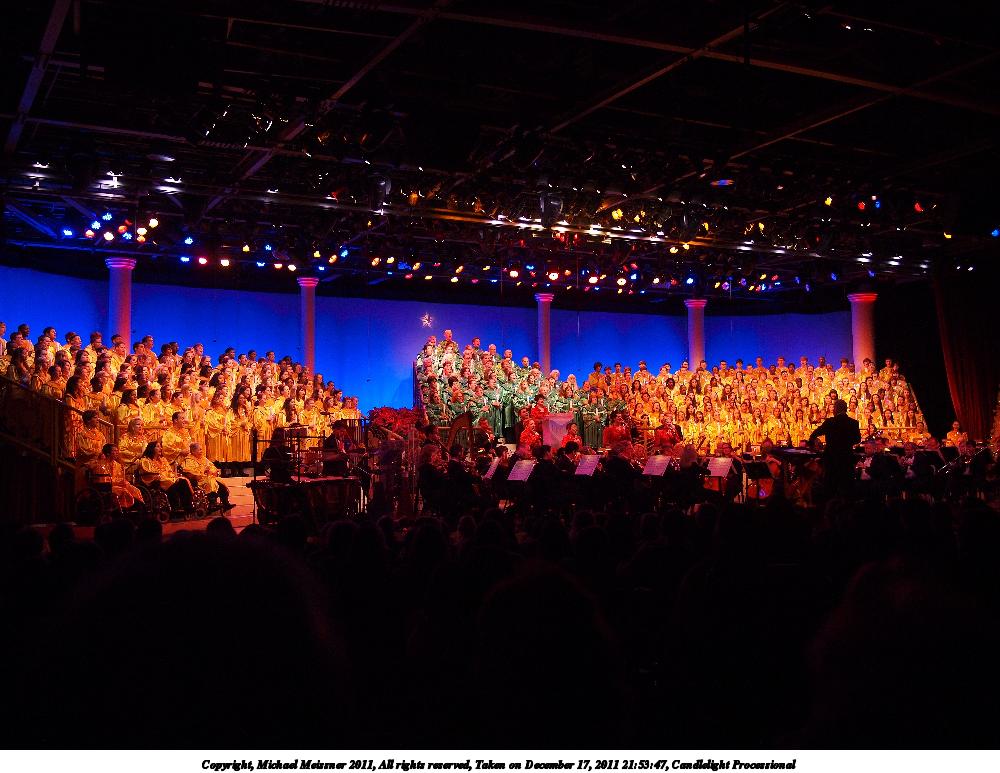 Picture #28: Candlelight Processional #5 1000x773, 124,377 bytes (122K), (html file) Copyright, Michael Meissner 2011, All rights reserved Olympus E-P2 camera with Panasonic 20mm lens f/1.8, ISO 200, 1/80 sec, 20.0mm, auto mode, vivid color, SHQ, spot metering, IS1 (All Direction Shake IS), noise reduction auto, noise filter low 35mm equivalent focal length 40.0mm Programs used: raw therapee Taken by Michael Meissner on December 17, 2011 21:36:34 Last modified on February 15, 2012 at 23:59 |