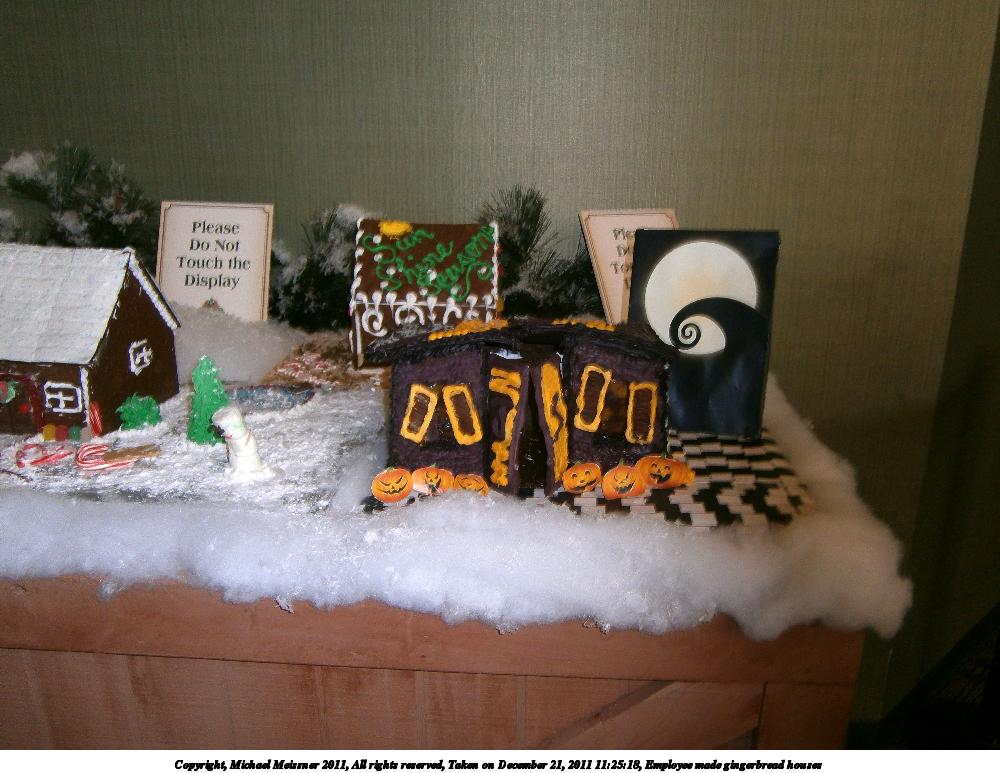 Picture #11: Employee made gingerbread houses #9 1000x773, 182,851 bytes (179K), (html file) Copyright, Michael Meissner 2011, All rights reserved Olympus VG-120 camera f/5.8, ISO 200, flash, 1/100 sec, 19.6mm, auto mode, HQ, center weight metering 35mm equivalent focal length 111.0mm Programs used: raw therapee Taken by Michael Meissner on December 21, 2011 11:24:53 Last modified on February 16, 2012 at 00:09 |