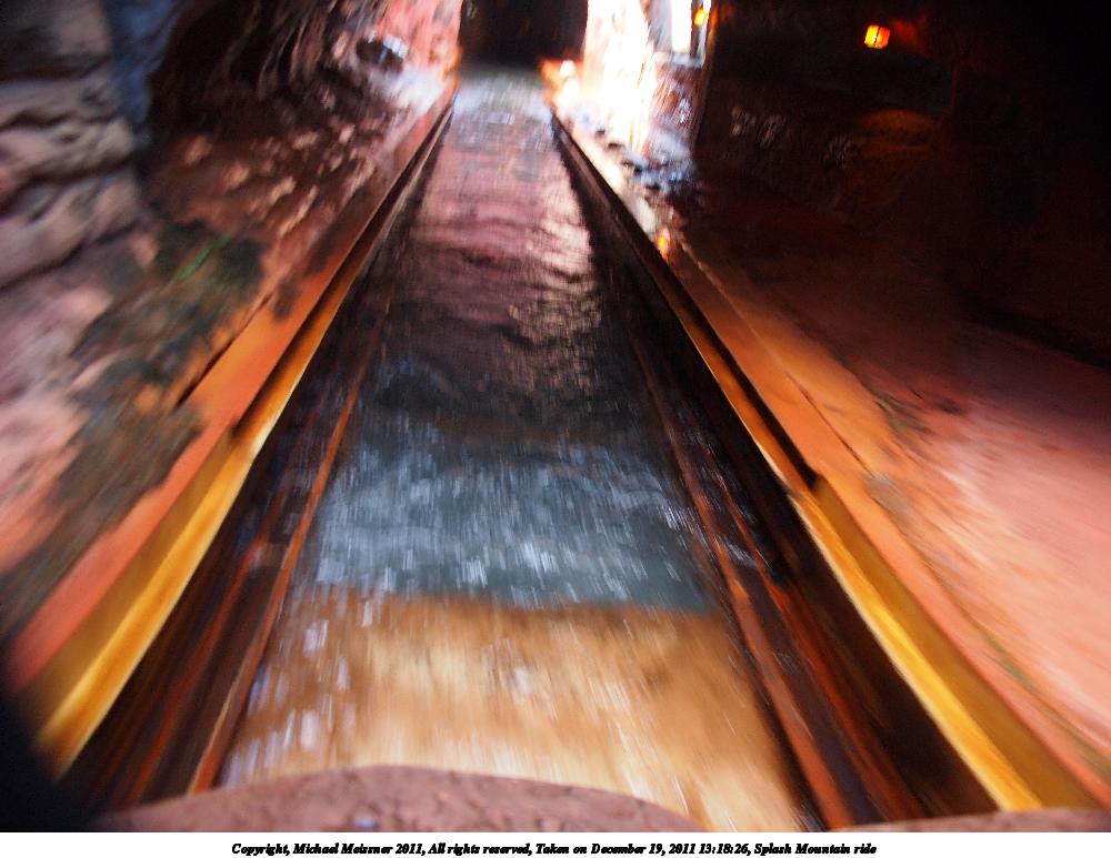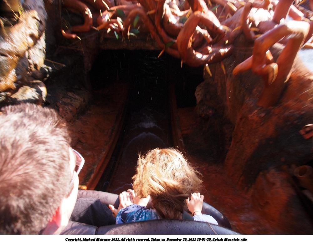Picture #41: Splash Mountain ride #32 1000x773, 92,206 bytes (91K), (html file) Copyright, Michael Meissner 2011, All rights reserved Olympus E-5 camera with Olympus 14-54mm f/2.8-3.5 lens f/2.8, ISO 2000, 1/60 sec, 14.0mm, auto mode, vivid color, matrix metering, continous focus, IS1 (All Direction Shake IS) 35mm equivalent focal length 28.0mm Programs used: adjusttime, noiseninja, raw therapee Taken by Michael Meissner on December 20, 2011 10:03:29 Last modified on February 16, 2012 at 21:52 |