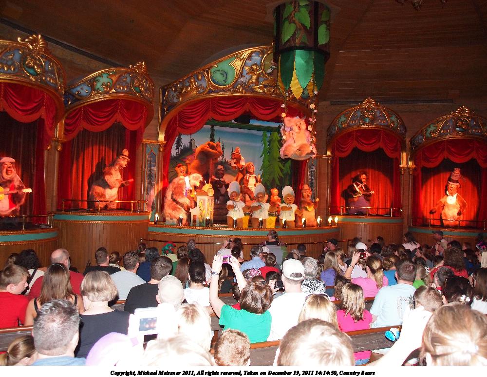 Picture #109: Country Bears 1000x773, 173,351 bytes (170K), (html file) Copyright, Michael Meissner 2011, All rights reserved Olympus E-5 camera with Olympus 14-54mm f/2.8-3.5 lens f/2.8, ISO 1000, flash (+0.7 flash compensation), 1/60 sec, 14.0mm, auto mode, vivid color, center weight metering, IS1 (All Direction Shake IS) 35mm equivalent focal length 28.0mm Programs used: adjusttime, raw therapee Taken by Michael Meissner on December 19, 2011 14:14:50 Last modified on February 16, 2012 at 10:24 |