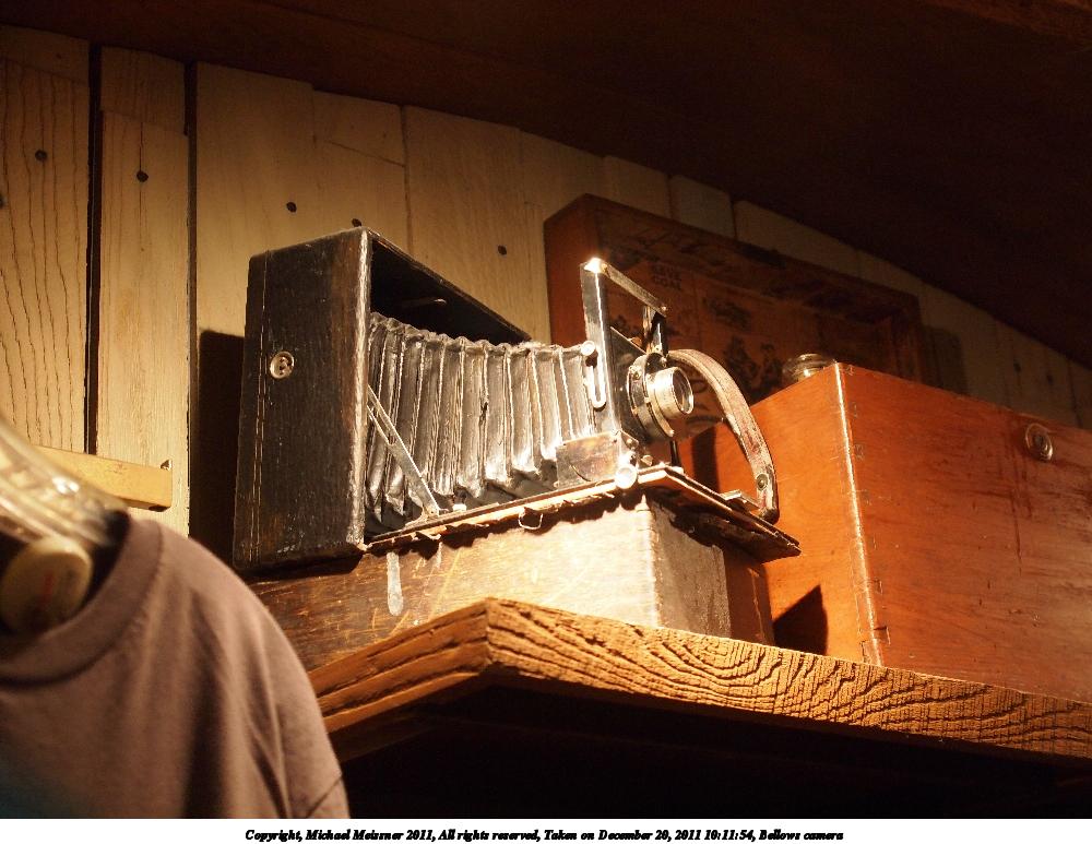 Picture #36: Bellows camera 1000x773, 123,723 bytes (121K), (html file) Copyright, Michael Meissner 2011, All rights reserved Olympus E-5 camera with Olympus 14-54mm f/2.8-3.5 lens f/3.2, ISO 1000, 1/60 sec, 31.0mm, auto mode, vivid color, matrix metering, IS1 (All Direction Shake IS) 35mm equivalent focal length 62.0mm Programs used: adjusttime, raw therapee Taken by Michael Meissner on December 20, 2011 10:11:54 Last modified on February 16, 2012 at 21:54 |