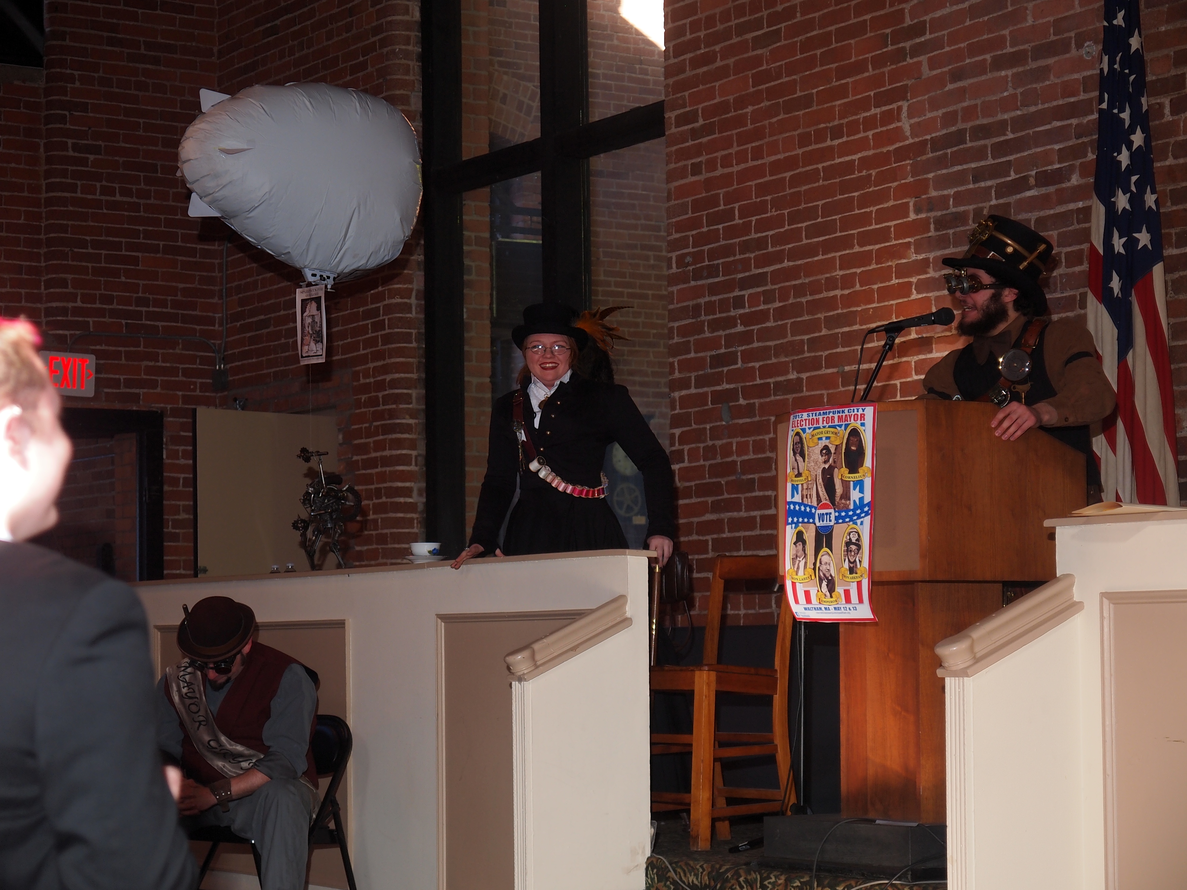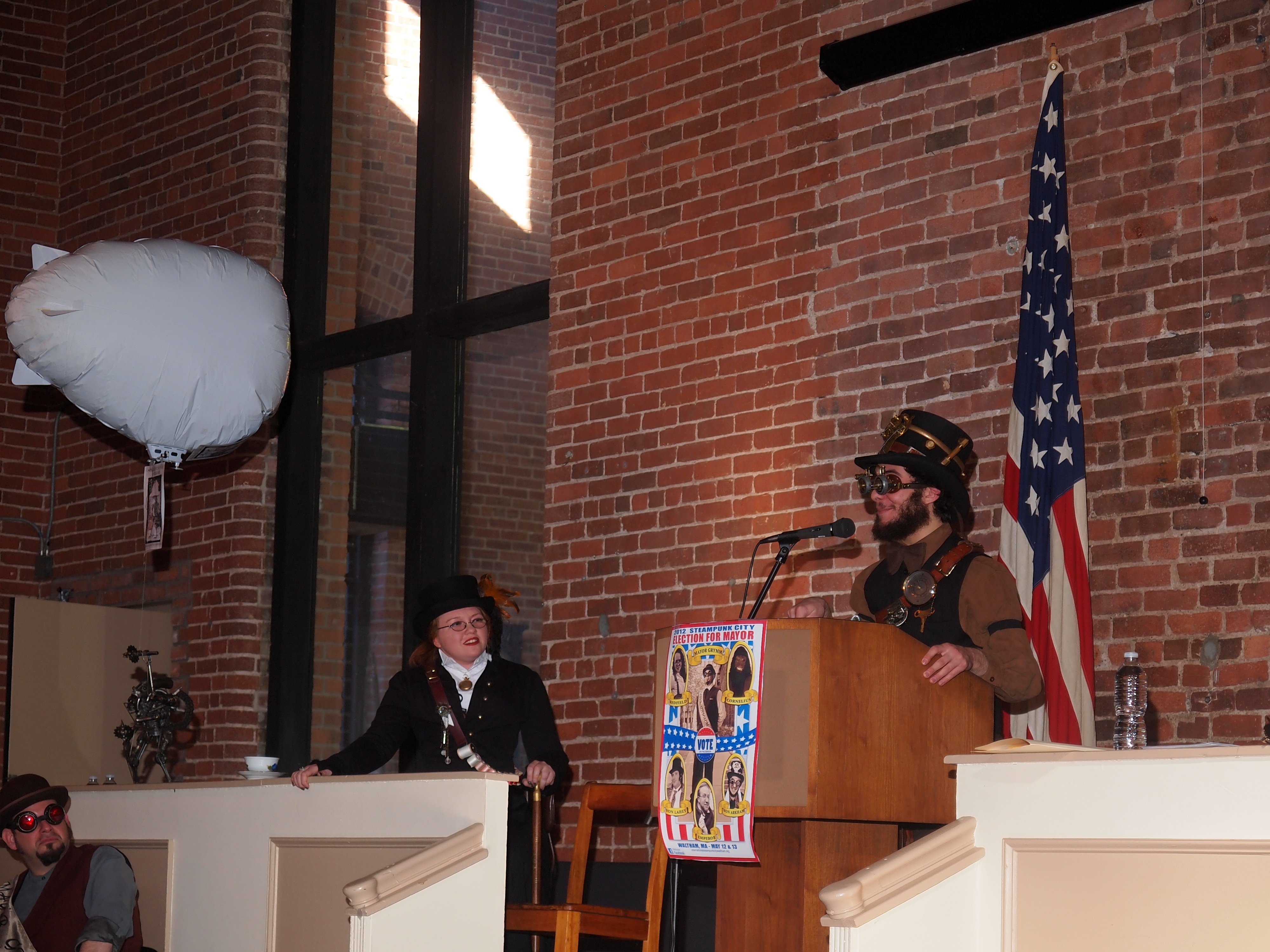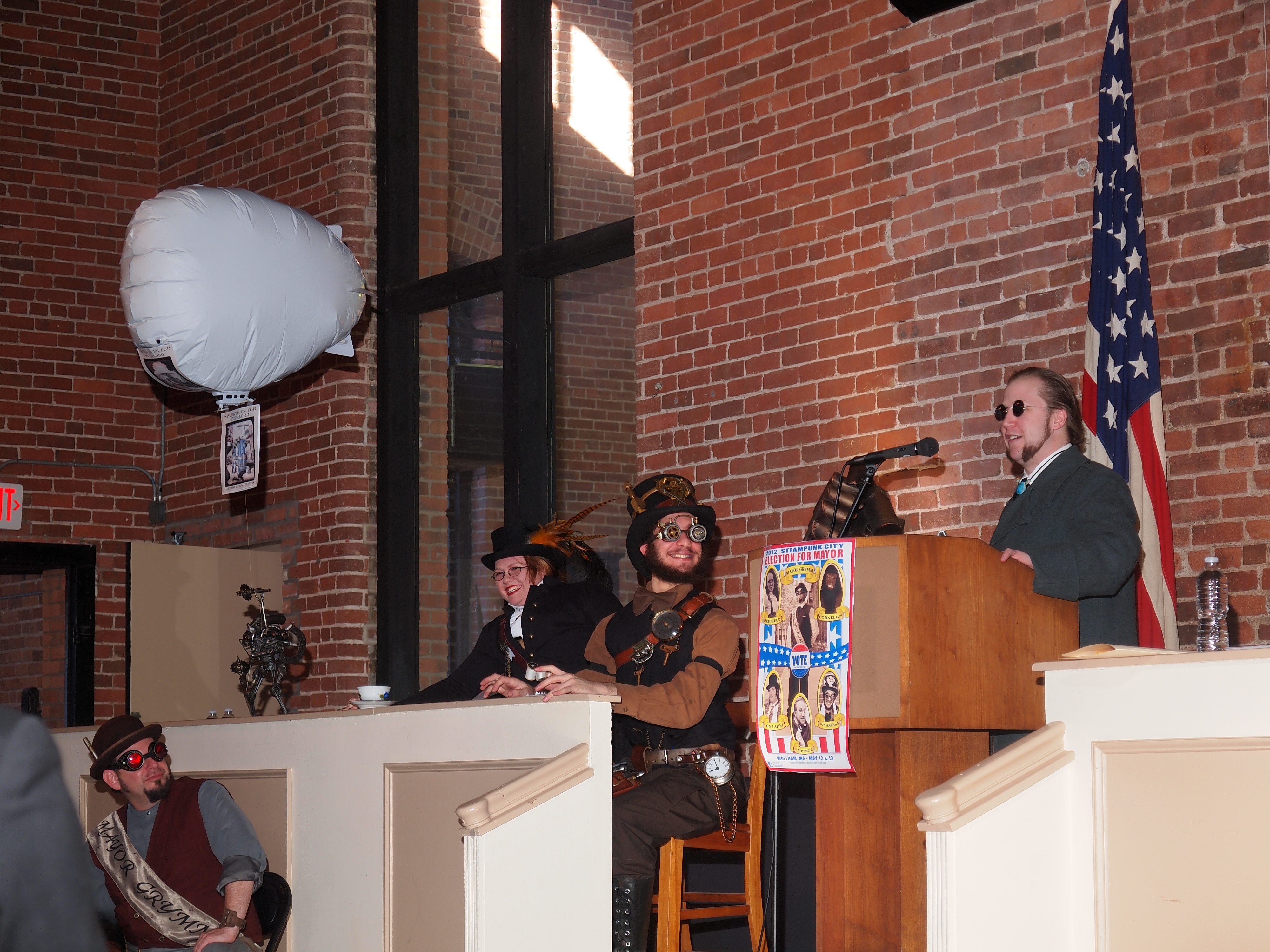 Picture #49: Steampunkers Small: 1000x773, 112,171 bytes (110K), (html file) Large: 4000x3000, 2,712,929 bytes (2.6M), (html file) Copyright, Michael Meissner 2012, All rights reserved Olympus E-5 camera with Olympus 14-54mm f/2.8-3.5 lens f/3.3, ISO 200, Metz 48 flash (+0.3 flash compensation), 1/80 sec, 40.0mm, auto mode, vivid color, matrix metering, IS1 (All Direction Shake IS), noise reduction auto 35mm equivalent focal length 80.0mm Programs used: raw therapee Taken by Michael Meissner on February 12, 2012 14:28:52 Last modified on February 22, 2012 at 21:58 |