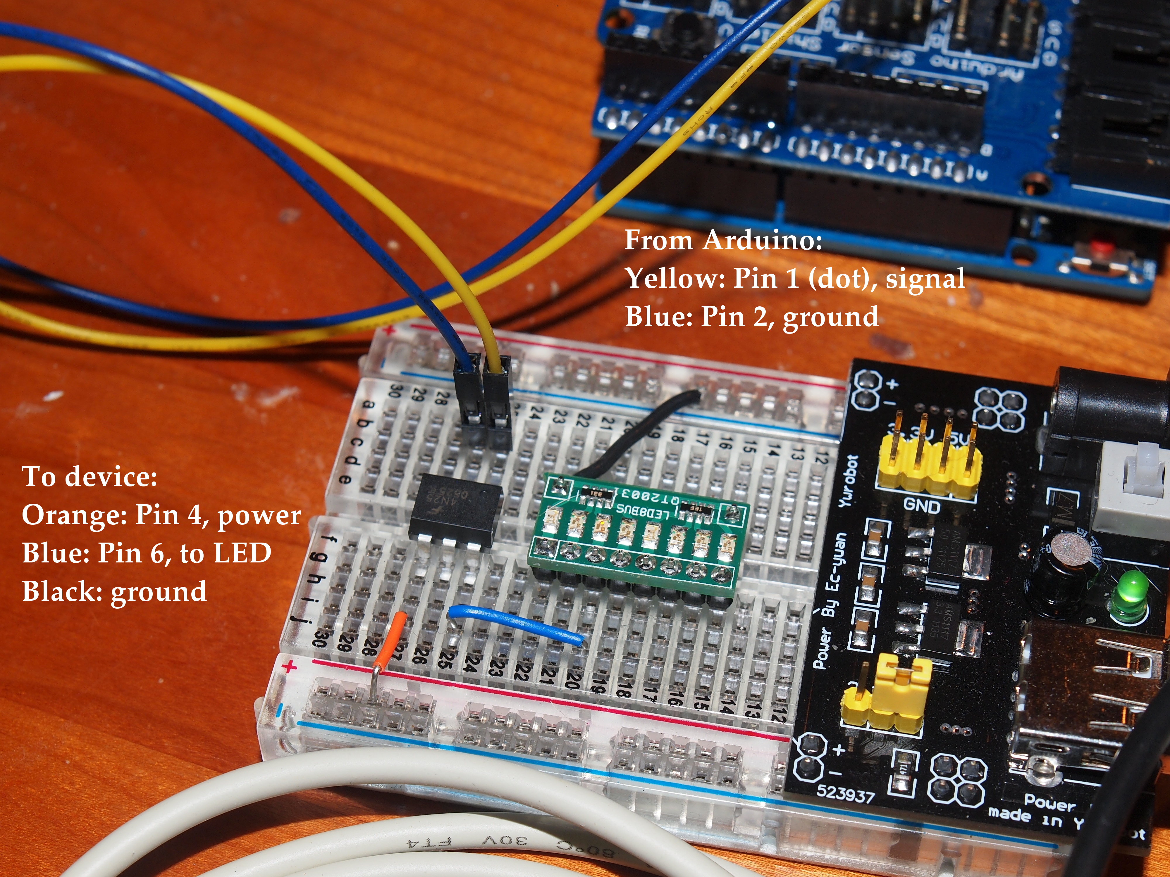 Picture #10: Arduino with 4N26JP opto-isolator Small: 1000x773, 188,265 bytes (184K), (html file) Large: 4000x3000, 4,580,300 bytes (4.4M), (html file) Copyright, Michael Meissner 2012, All rights reserved Olympus E-5 camera with Olympus 14-54mm f/2.8-3.5 lens f/8.0, ISO 200, flash (+0.3 flash compensation), 1/60 sec, 23.0mm, aperture priority, vivid color, matrix metering, IS1 (All Direction Shake IS) 35mm equivalent focal length 46.0mm Extra equipment used: pop-up flash Programs used: crop, raw therapee Taken by Michael Meissner on July 16, 2012 08:24:53 Last modified on July 16, 2012 at 08:49 |