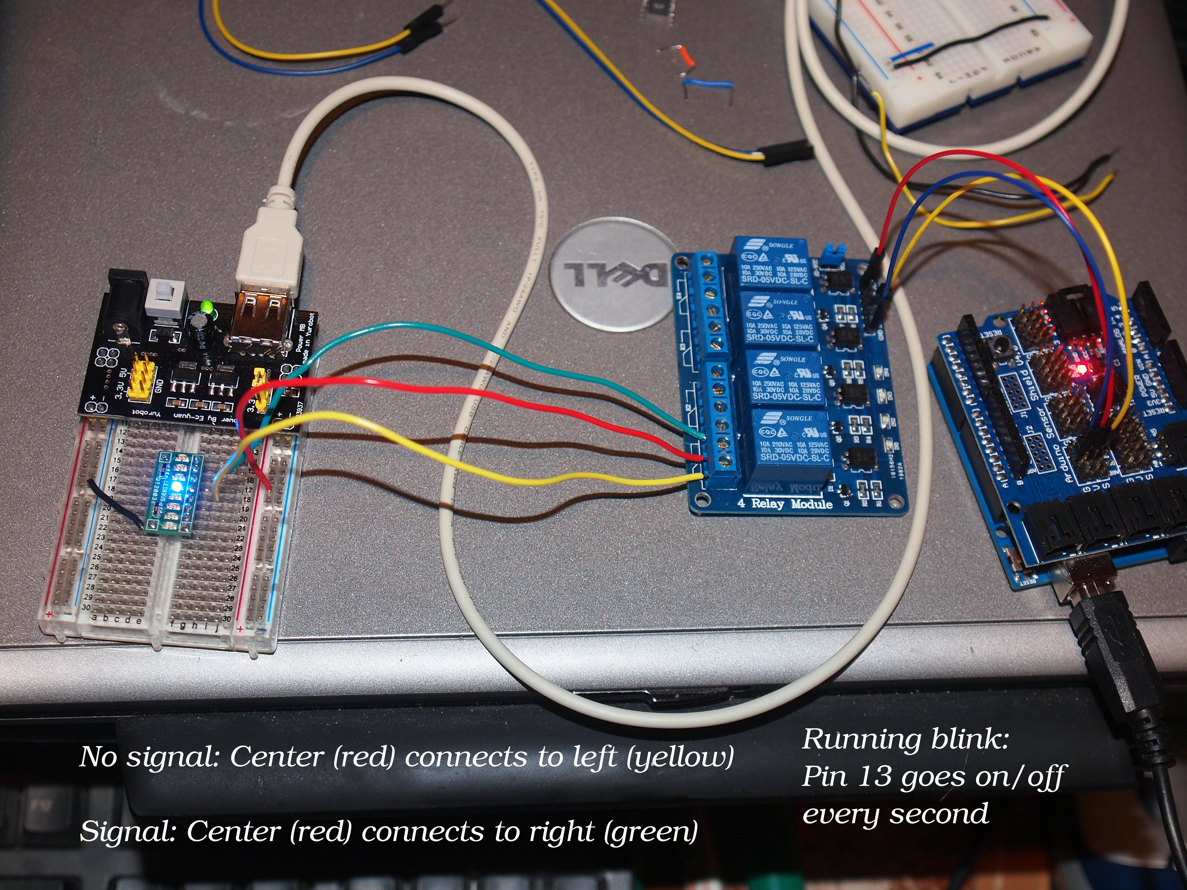 Picture #7: Setup for 4 element relay module #2 Small: 1000x773, 183,930 bytes (180K), (html file) Large: 4000x3000, 10,928,220 bytes (11M), (html file) Olympus E-5 camera with Olympus 14-54mm f/2.8-3.5 lens f/3.1, ISO 200, flash (+0.3 flash compensation), 1/60 sec, 28.0mm, auto mode, vivid color, matrix metering, IS1 (All Direction Shake IS) 35mm equivalent focal length 56.0mm Extra equipment used: pop-up flash Programs used: crop, gimp, raw therapee Taken by Michael Meissner on July 17, 2012 23:56:41 Last modified on July 18, 2012 at 08:15 |