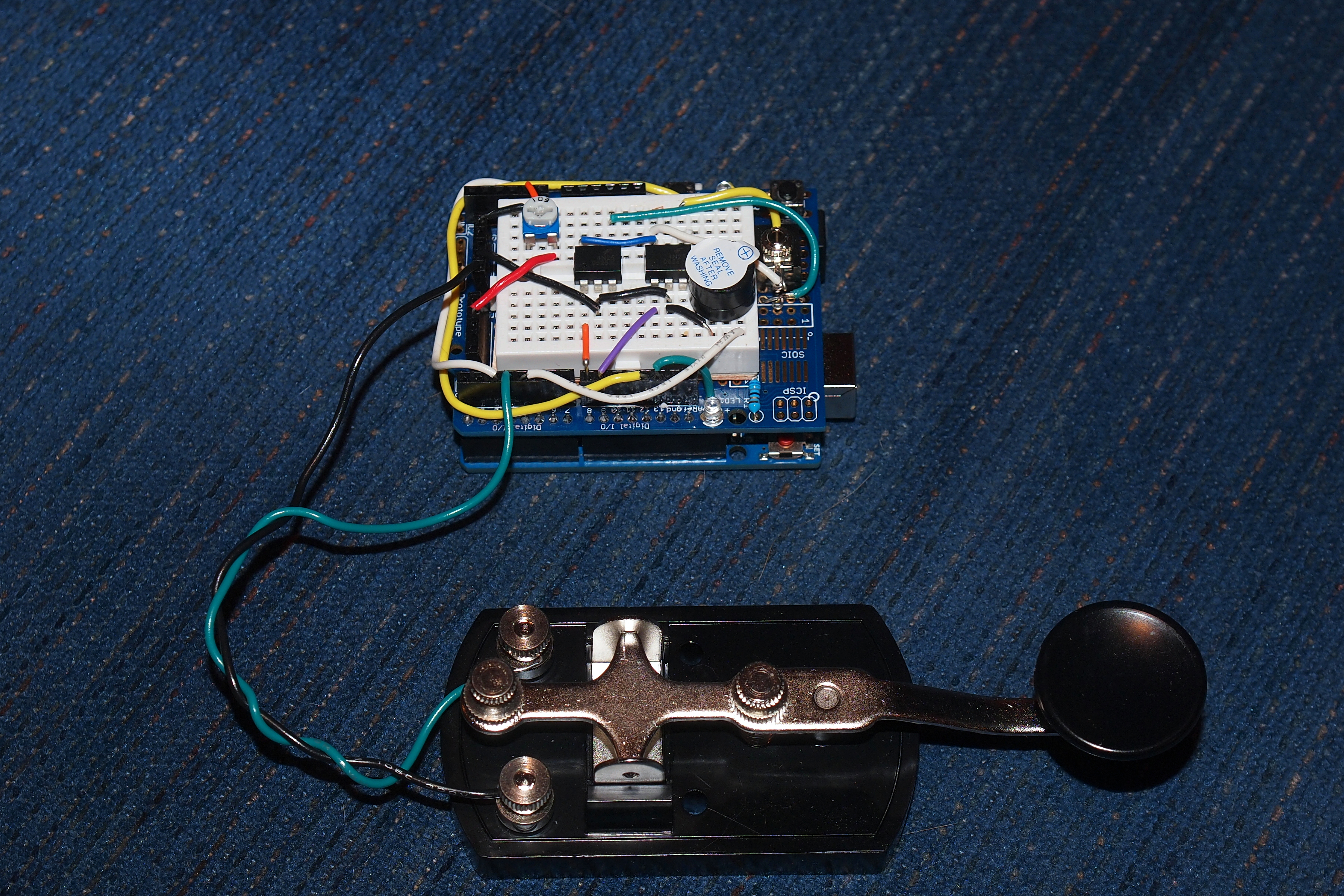 Picture #2: Arduino telegraph key shutter release #2 Small: 900x623, 119,538 bytes (117K), (html file) Large: 3600x2400, 6,279,948 bytes (6.0M), (html file) Copyright, Michael Meissner 2012, All rights reserved Olympus E-5 camera with Olympus 14-54mm f/2.8-3.5 lens f/5.6, ISO 200, flash (+0.3 flash compensation), 1/60 sec, 52.0mm, aperture priority, vivid color, matrix metering, IS1 (All Direction Shake IS), noise reduction auto 35mm equivalent focal length 104.0mm Extra equipment used: pop-up flash Programs used: gimp Taken by Michael Meissner on August 05, 2012 23:36:46 Last modified on August 06, 2012 at 00:31 |