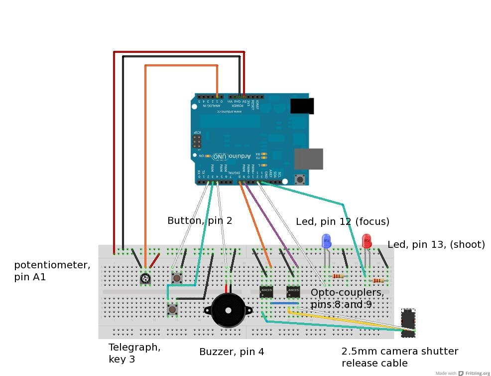 Picture #1: Arduino telegraph key shutter release #3 Small: 986x777, 79,215 bytes (78K), (html file) Large: 986x754, 199,903 bytes (196K), (html file) Created with Fritzing tool No EXIF information available Programs used: gimp Taken by Michael Meissner Last modified on August 06, 2012 at 23:58 |