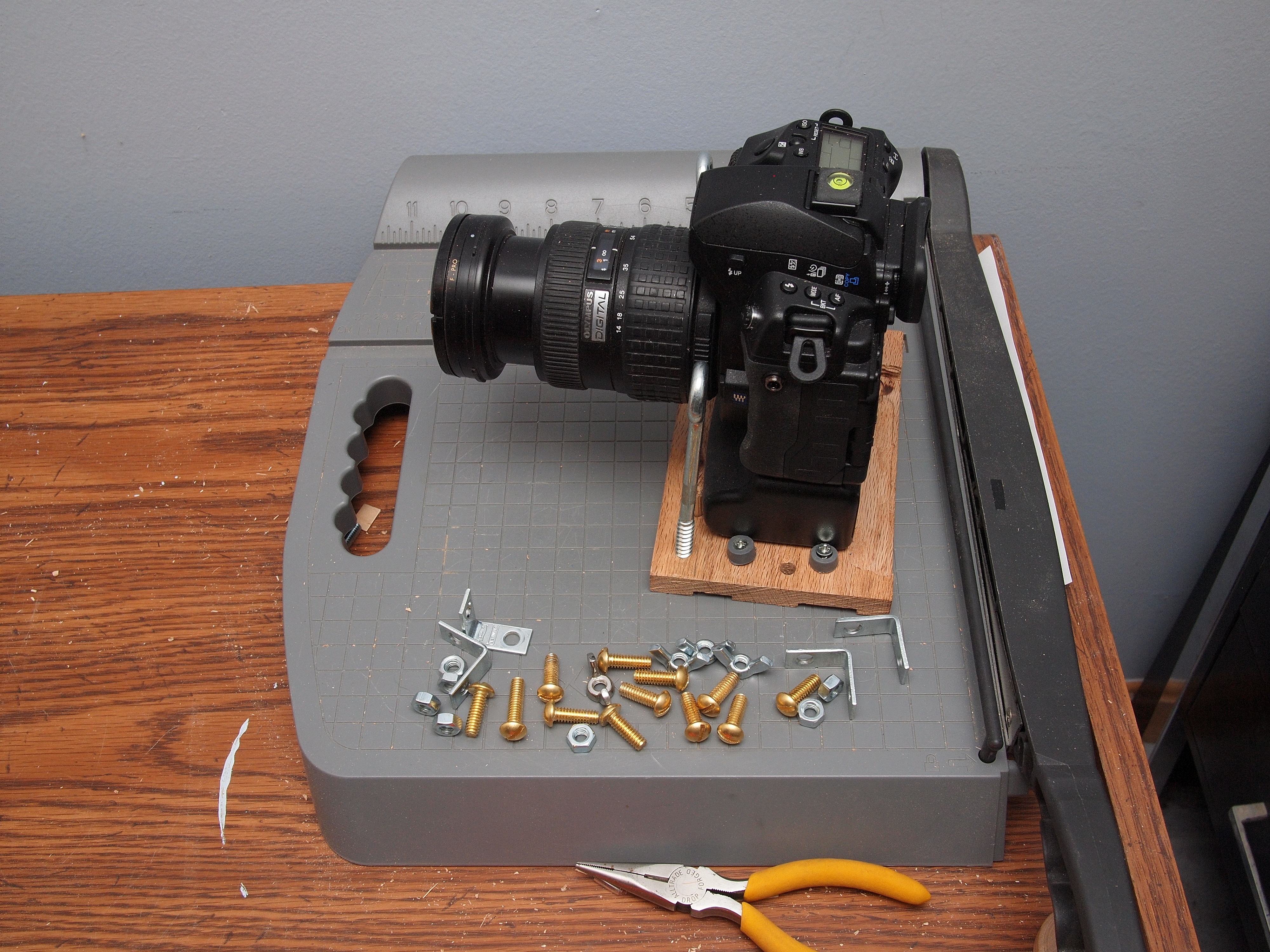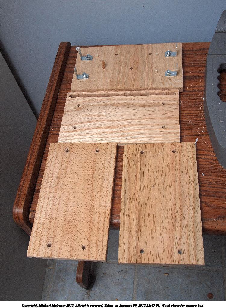 Picture #72: Wood pieces for camera box Small: 750x1023, 169,219 bytes (166K), (html file) Large: 3000x4000, 5,154,083 bytes (4.9M), (html file) Copyright, Michael Meissner 2012, All rights reserved Olympus E-P2 camera with Panasonic 20mm lens f/8.0, ISO 320, FL-36 flash (+0.33 flash compensation), 1/60 sec, 20.0mm, aperture priority, vivid color, SHQ, spot metering, IS1 (All Direction Shake IS), noise reduction auto, noise filter low 35mm equivalent focal length 40.0mm Extra equipment used: Olympus FL-36 flash Programs used: adjusttime, raw therapee Taken by Michael Meissner on January 09, 2012 22:47:51 Last modified on January 11, 2012 at 10:03 |