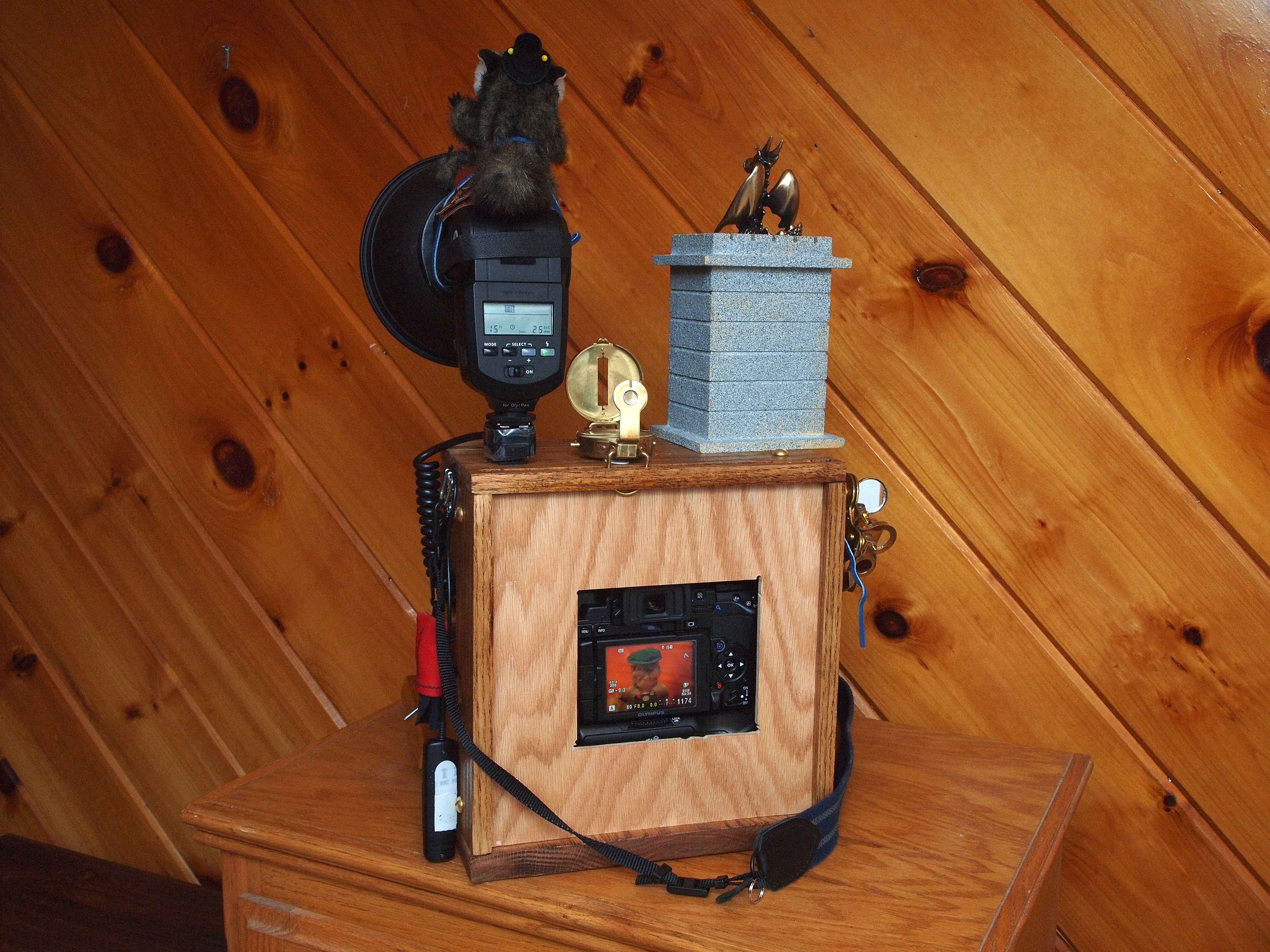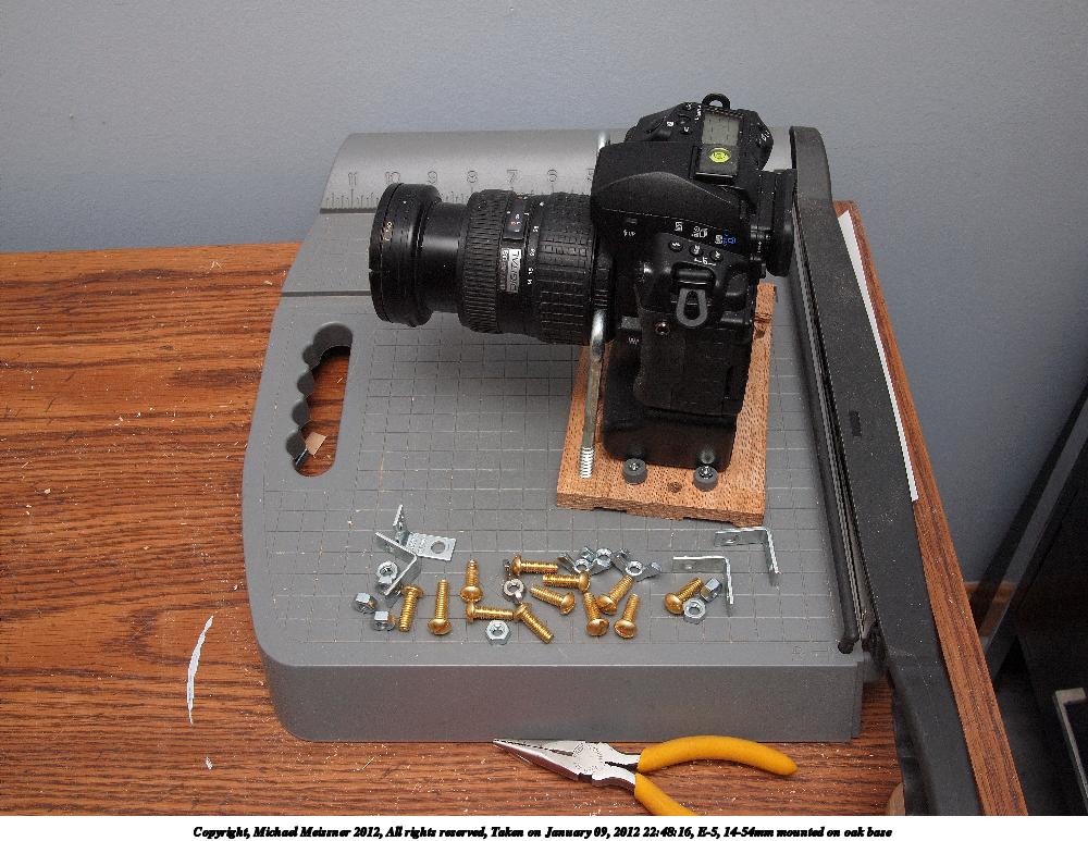 Picture #71: E-5, 14-54mm mounted on oak base Small: 1000x773, 152,819 bytes (150K), (html file) Large: 4000x3000, 4,398,490 bytes (4.2M), (html file) Copyright, Michael Meissner 2012, All rights reserved Olympus E-P2 camera with Panasonic 20mm lens f/8.0, ISO 250, FL-36 flash (+0.33 flash compensation), 1/60 sec, 20.0mm, aperture priority, vivid color, SHQ, spot metering, IS1 (All Direction Shake IS), noise reduction auto, noise filter low 35mm equivalent focal length 40.0mm Extra equipment used: Olympus FL-36 flash Programs used: adjusttime, raw therapee Taken by Michael Meissner on January 09, 2012 22:48:16 Last modified on January 11, 2012 at 10:04 |