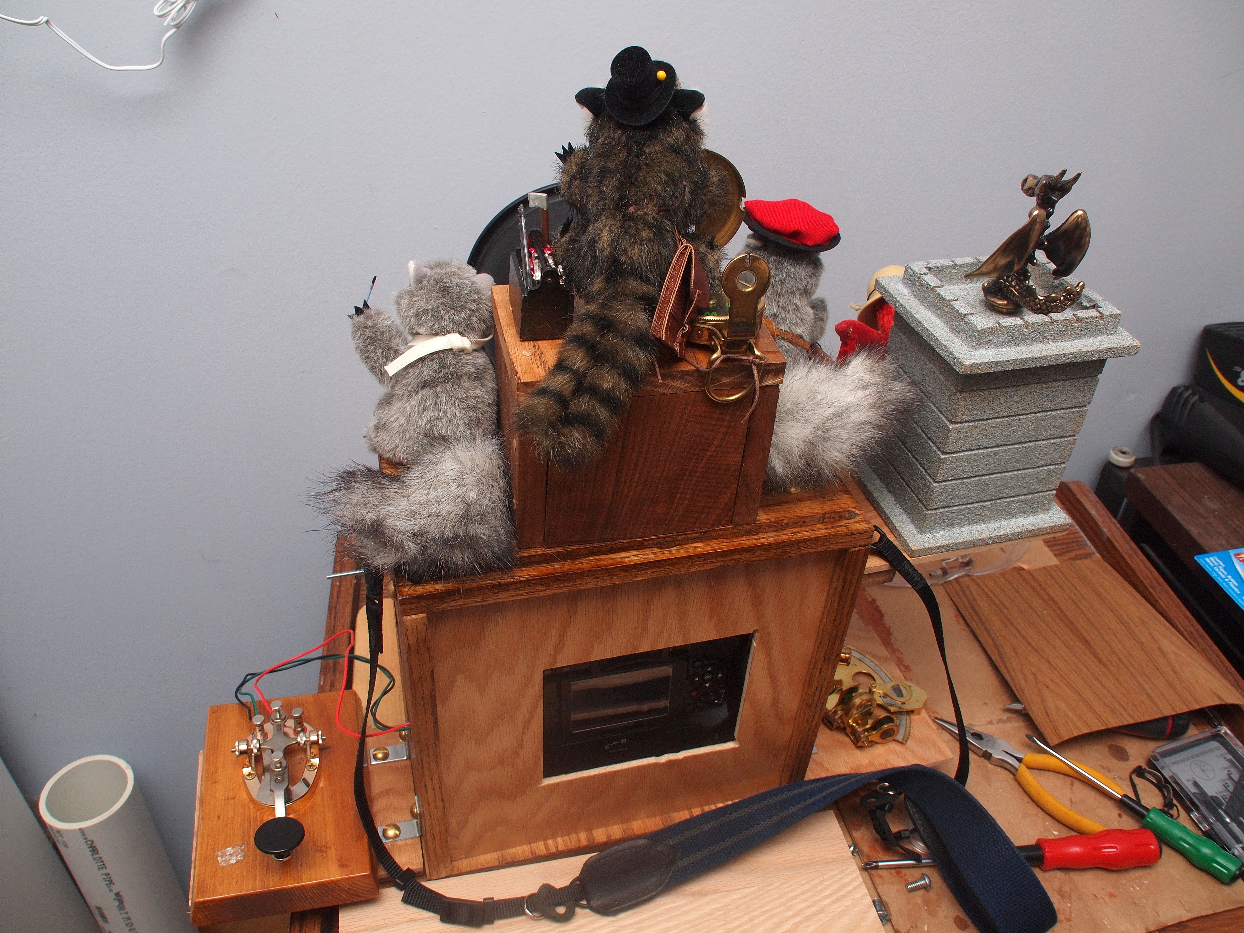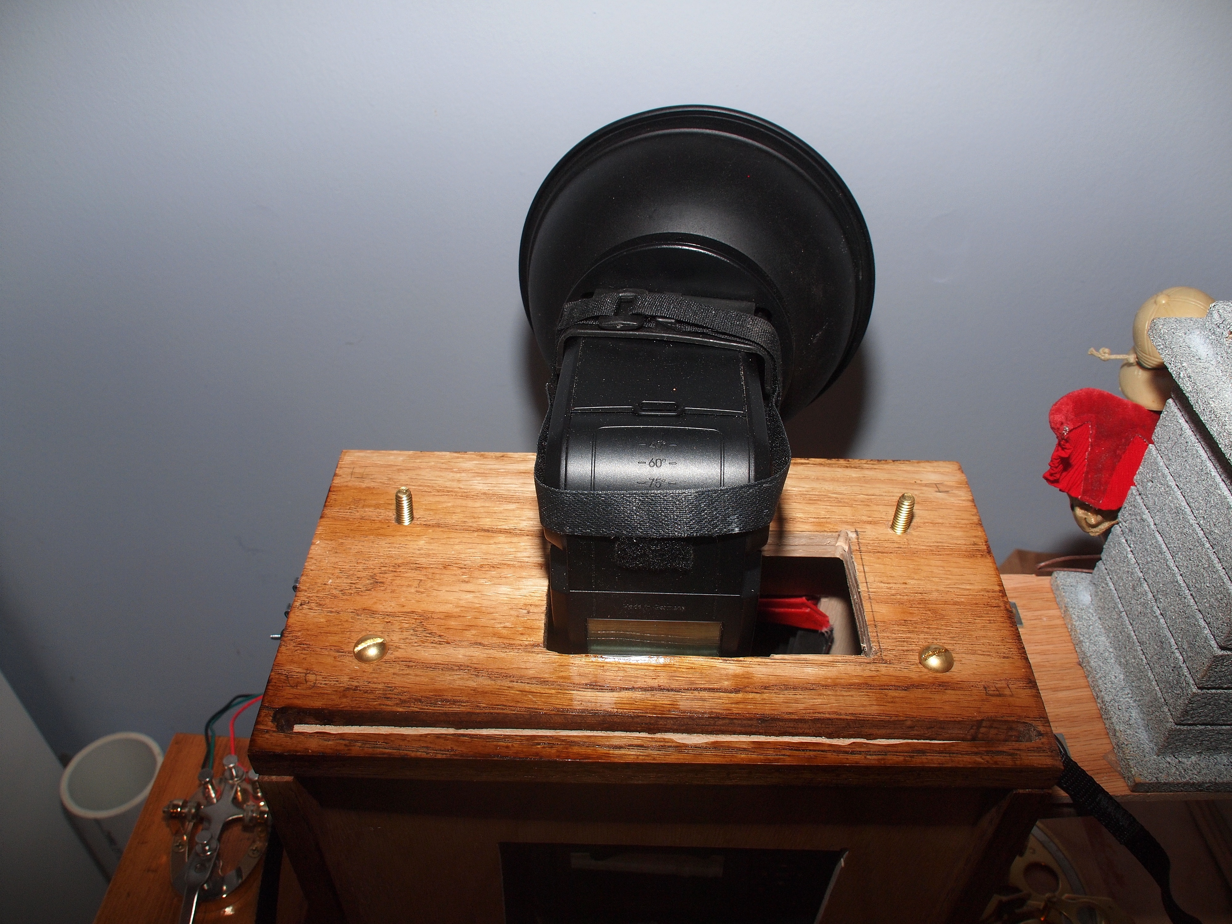 Picture #19: Telegraph key shutter release Small: 1000x773, 157,004 bytes (154K), (html file) Large: 4000x3000, 4,294,375 bytes (4.1M), (html file) Copyright, Michael Meissner 2012, All rights reserved Olympus E-P2 camera with Olympus-m43 14-150mm f/4.0-5.6 lens f/8.0, ISO 200, FL-36 flash (+0.33 flash compensation), 1/60 sec, 22.0mm, aperture priority, vivid color, SHQ, matrix metering, IS1 (All Direction Shake IS), noise reduction auto, noise filter low 35mm equivalent focal length 44.0mm Extra equipment used: Olympus FL-36 flash Programs used: crop, raw therapee Taken by Michael Meissner on May 13, 2012 22:58:00 Last modified on May 16, 2012 at 08:43 |