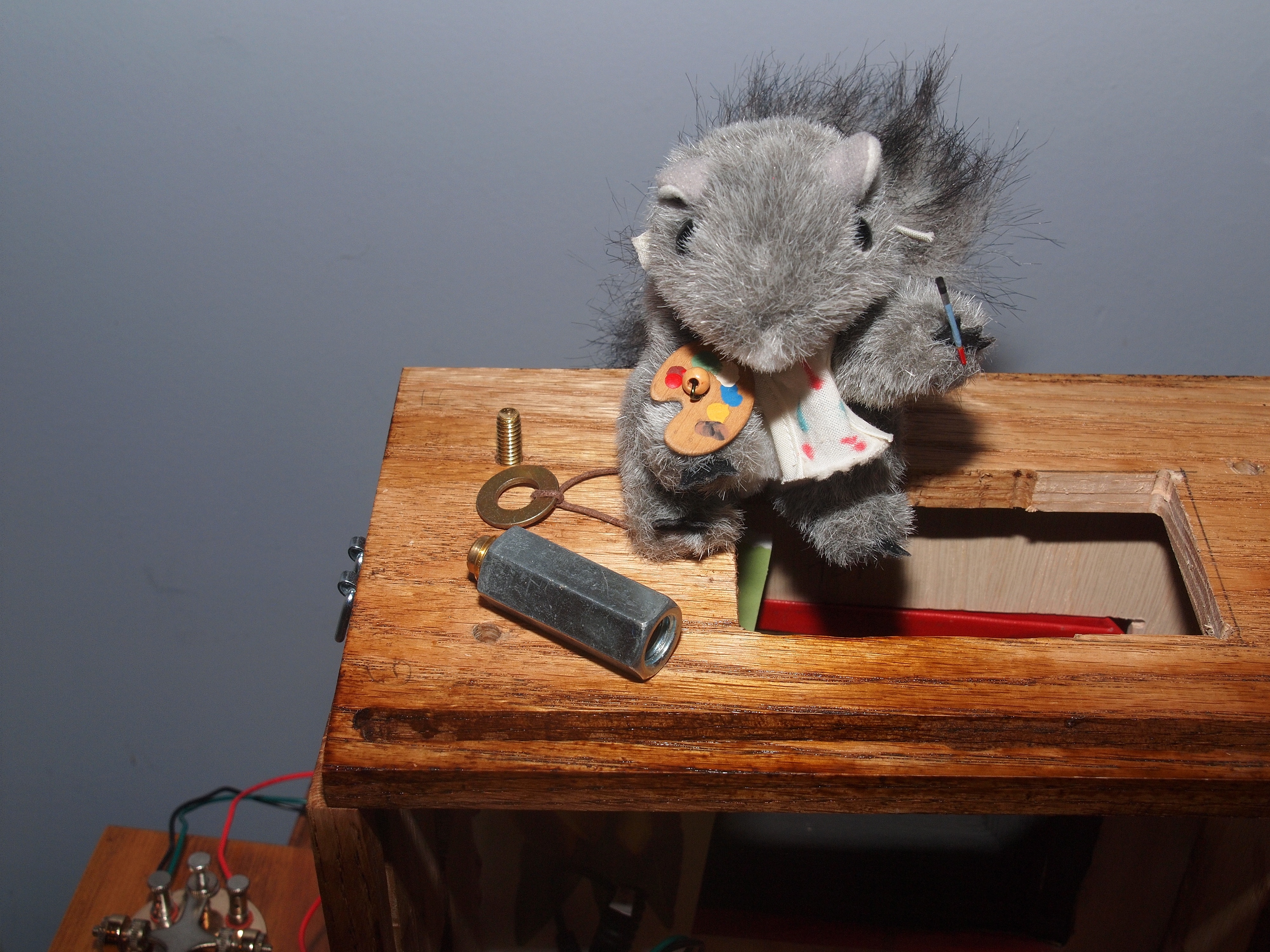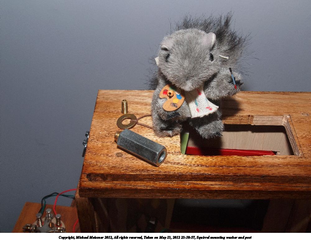 Picture #14: Squirrel mounting washer and post Small: 1000x773, 135,555 bytes (133K), (html file) Large: 4000x3000, 4,060,582 bytes (3.9M), (html file) Copyright, Michael Meissner 2012, All rights reserved Olympus E-P2 camera with Olympus-m43 14-150mm f/4.0-5.6 lens f/8.0, ISO 200, FL-36 flash (+0.33 flash compensation), 1/60 sec, 22.0mm, aperture priority, vivid color, SHQ, matrix metering, IS1 (All Direction Shake IS), noise reduction auto, noise filter low 35mm equivalent focal length 44.0mm Extra equipment used: Olympus FL-36 flash Programs used: crop, raw therapee Taken by Michael Meissner on May 13, 2012 23:10:57 Last modified on May 16, 2012 at 08:46 |