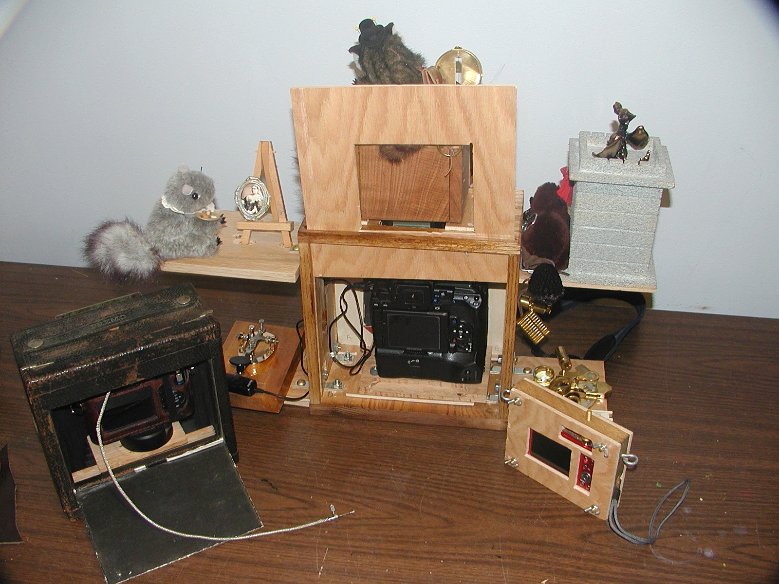 Picture #11: Back of the disguised cameras at SIR Small: 800x623, 86,471 bytes (85K), (html file) Large: 1600x1200, 753,297 bytes (736K), (html file) Copyright, Michael Meissner 2012, All rights reserved Olympus C-2100UZ camera f/2.8, ISO 100, flash, 1/30 sec, 7.0mm, auto mode, SHQ, cloudy, matrix metering 35mm equivalent focal length 39.0mm Extra equipment used: pop-up flash Programs used: raw therapee Taken by Michael Meissner on June 11, 2012 08:25:44 Last modified on June 11, 2012 at 21:39 |