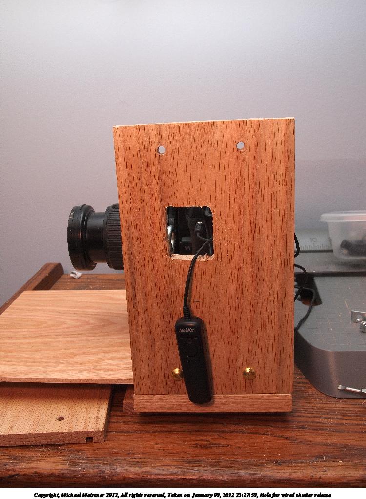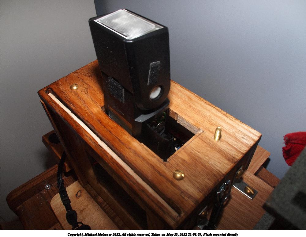 Picture #67: Hole for wired shutter release Small: 750x1023, 130,594 bytes (128K), (html file) Large: 3000x4000, 4,189,826 bytes (4.0M), (html file) Copyright, Michael Meissner 2012, All rights reserved Olympus E-P2 camera with Panasonic 20mm lens f/8.0, ISO 200, FL-36 flash (+0.33 flash compensation), 1/60 sec, 20.0mm, aperture priority, vivid color, SHQ, spot metering, IS1 (All Direction Shake IS), noise reduction auto, noise filter low 35mm equivalent focal length 40.0mm Extra equipment used: Olympus FL-36 flash Programs used: adjusttime, raw therapee Taken by Michael Meissner on January 09, 2012 23:27:59 Last modified on January 11, 2012 at 10:06 |