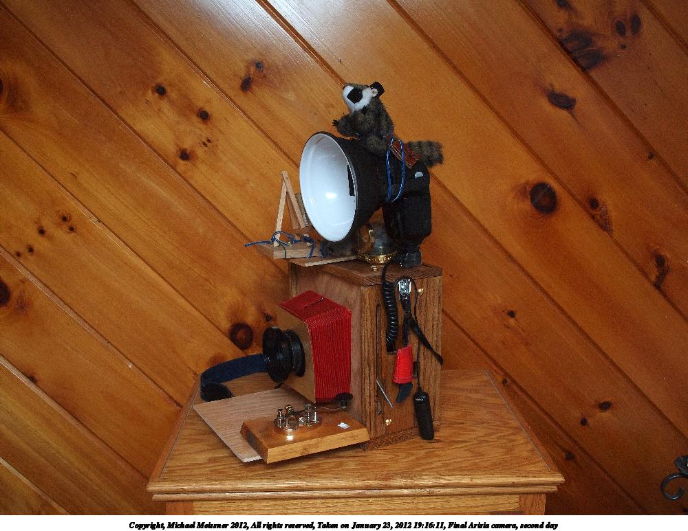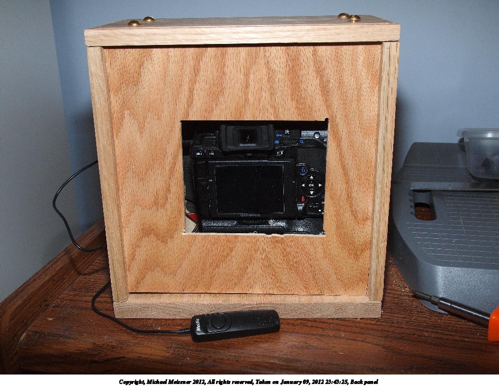 Picture #38: Back of the arisia camera Small: 1000x773, 151,163 bytes (148K), (html file) Large: 4000x3000, 4,654,961 bytes (4.4M), (html file) Copyright, Michael Meissner 2012, All rights reserved Olympus E-P2 camera with Panasonic 20mm lens f/9.0, ISO 400, FL-36 flash (+0.33 flash compensation), 1/60 sec, 20.0mm, aperture priority, vivid color, SHQ, spot metering, IS1 (All Direction Shake IS), noise reduction auto, noise filter low 35mm equivalent focal length 40.0mm Extra equipment used: Olympus FL-36 flash Programs used: raw therapee Taken by Michael Meissner on January 12, 2012 10:04:06 Last modified on January 27, 2012 at 09:06 |