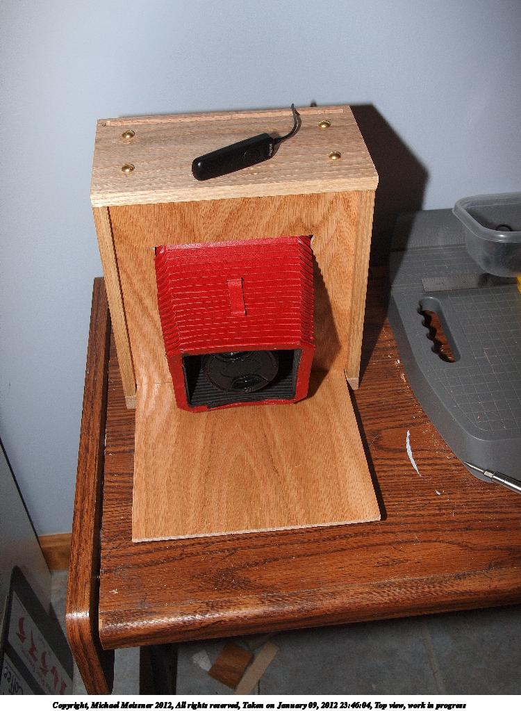 Picture #61: Top view, work in progress Small: 750x1023, 141,959 bytes (139K), (html file) Large: 3000x4000, 6,991,231 bytes (6.7M), (html file) Copyright, Michael Meissner 2012, All rights reserved Olympus E-P2 camera with Panasonic 20mm lens f/8.0, ISO 200, FL-36 flash (+0.33 flash compensation), 1/60 sec, 20.0mm, aperture priority, vivid color, SHQ, spot metering, IS1 (All Direction Shake IS), noise reduction auto, noise filter low 35mm equivalent focal length 40.0mm Extra equipment used: Olympus FL-36 flash Programs used: adjusttime, rawtherapee Taken by Michael Meissner on January 09, 2012 23:46:04 Last modified on January 11, 2012 at 10:10 |