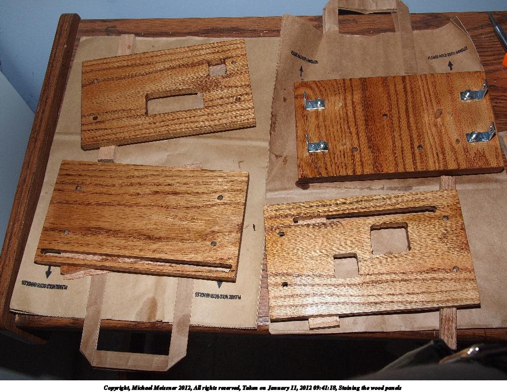 Picture #55: Staining the wood panels Small: 1000x773, 188,963 bytes (185K), (html file) Large: 4000x3000, 4,900,373 bytes (4.7M), (html file) Copyright, Michael Meissner 2012, All rights reserved Olympus E-P2 camera with Panasonic 20mm lens f/8.0, ISO 200, FL-36 flash (+0.33 flash compensation), 1/60 sec, 20.0mm, aperture priority, vivid color, SHQ, spot metering, IS1 (All Direction Shake IS), noise reduction auto, noise filter low 35mm equivalent focal length 40.0mm Extra equipment used: Olympus FL-36 flash Programs used: raw therapee Taken by Michael Meissner on January 11, 2012 09:41:18 Last modified on January 11, 2012 at 10:17 |