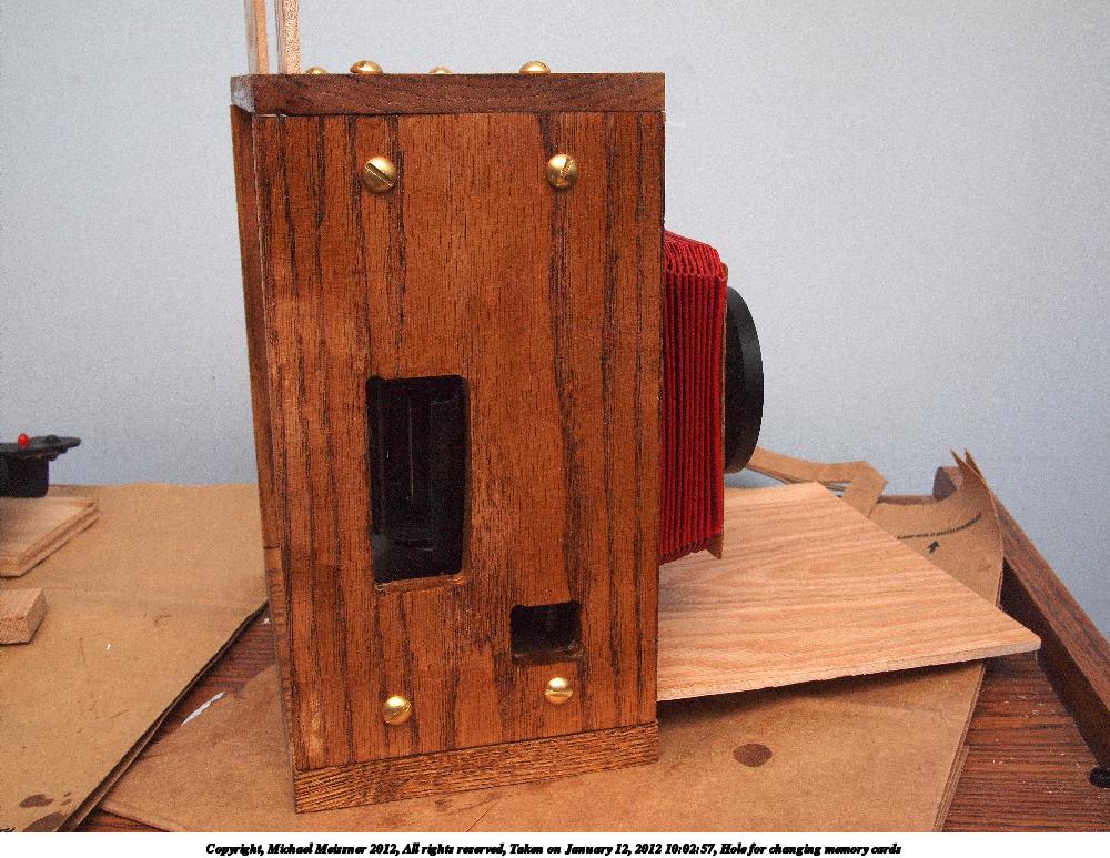 Picture #39: Hole for changing memory cards Small: 1000x773, 158,595 bytes (155K), (html file) Large: 4000x3000, 5,212,592 bytes (5.0M), (html file) Copyright, Michael Meissner 2012, All rights reserved Olympus E-P2 camera with Panasonic 20mm lens f/9.0, ISO 320, FL-36 flash (+0.33 flash compensation), 1/60 sec, 20.0mm, aperture priority, vivid color, SHQ, spot metering, IS1 (All Direction Shake IS), noise reduction auto, noise filter low 35mm equivalent focal length 40.0mm Extra equipment used: Olympus FL-36 flash Programs used: raw therapee Taken by Michael Meissner on January 12, 2012 10:02:57 Last modified on January 27, 2012 at 09:06 |