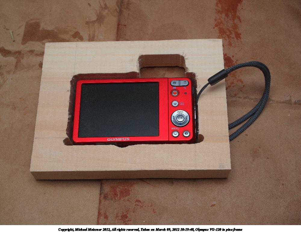 Picture #35: Olympus VG-120 in pine frame #2 Small: 1000x773, 112,325 bytes (110K), (html file) Large: 4000x3000, 3,632,565 bytes (3.5M), (html file) Copyright, Michael Meissner 2012, All rights reserved Olympus E-P2 camera with Olympus-m43 14-42mm f/3.5-5.6 lens f/8.0, ISO 200, FL-36 flash (+0.33 flash compensation), 1/60 sec, 29.0mm, aperture priority, vivid color, SHQ, matrix metering, IS1 (All Direction Shake IS), noise reduction auto, noise filter low 35mm equivalent focal length 58.0mm Extra equipment used: Olympus FL-36 flash Programs used: crop, raw therapee Taken by Michael Meissner on March 09, 2012 10:20:26 Last modified on March 13, 2012 at 00:32 |