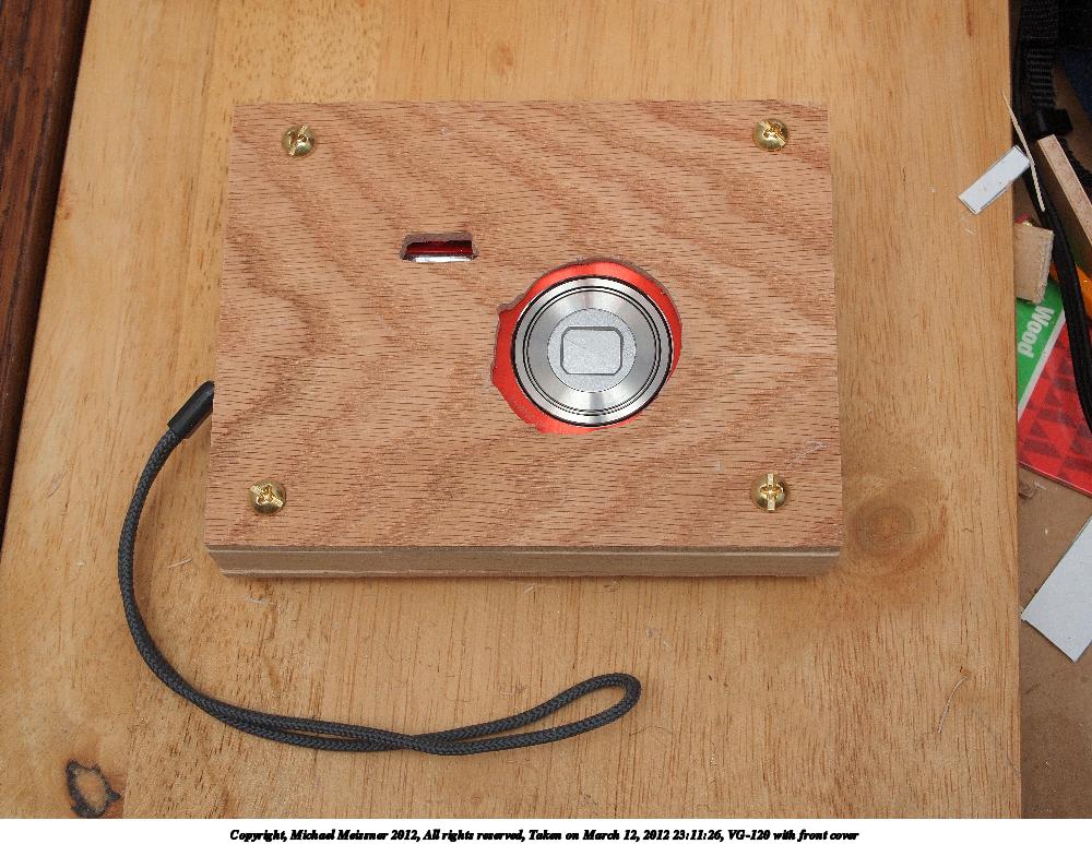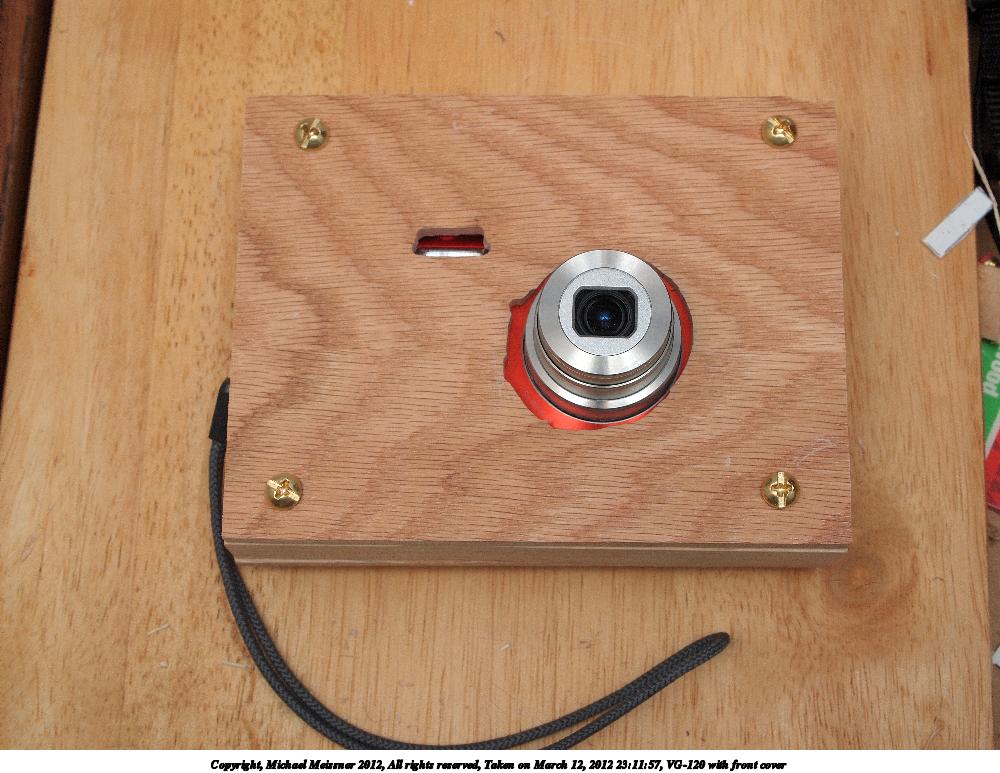 Picture #31: VG-120 with front cover #2 Small: 1000x773, 130,794 bytes (128K), (html file) Large: 4000x3000, 4,015,629 bytes (3.8M), (html file) Copyright, Michael Meissner 2012, All rights reserved Olympus E-P2 camera with Olympus-m43 14-42mm f/3.5-5.6 lens f/8.0, ISO 200, FL-36 flash (+0.33 flash compensation), 1/60 sec, 31.0mm, aperture priority, vivid color, SHQ, matrix metering, IS1 (All Direction Shake IS), noise reduction auto, noise filter low 35mm equivalent focal length 62.0mm Extra equipment used: Olympus FL-36 flash Programs used: crop, raw therapee Taken by Michael Meissner on March 12, 2012 23:11:57 Last modified on March 13, 2012 at 00:34 |