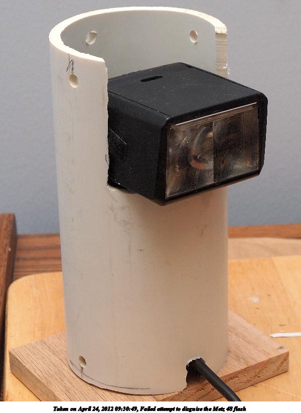 Picture #27: Failed attempt to disguise the Metz 48 flash #2 Small: 750x1023, 82,421 bytes (81K), (html file) Large: 3000x4000, 2,694,125 bytes (2.6M), (html file) Olympus E-5 camera with Olympus 14-54mm f/2.8-3.5 lens f/8.0, ISO 320, FL-36 flash (+0.3 flash compensation), 1/60 sec, 28.0mm, aperture priority, vivid color, matrix metering, IS1 (All Direction Shake IS) 35mm equivalent focal length 56.0mm Extra equipment used: Olympus FL-36 flash Programs used: crop, raw therapee, rotate left Taken by Michael Meissner on April 24, 2012 09:31:33 Last modified on May 16, 2012 at 08:49 |
