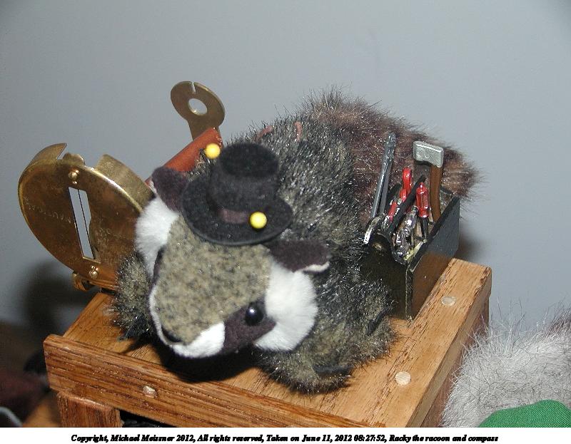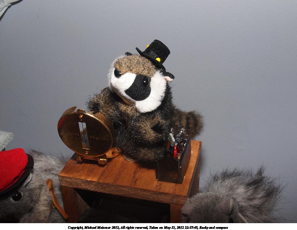 Picture #5: Racky the racoon and compass Small: 800x623, 89,167 bytes (88K), (html file) Large: 1600x1200, 743,549 bytes (727K), (html file) Copyright, Michael Meissner 2012, All rights reserved Olympus C-2100UZ camera f/2.8, ISO 100, flash, 1/80 sec, 16.8mm, auto mode, SHQ, cloudy, matrix metering 35mm equivalent focal length 93.0mm Extra equipment used: pop-up flash Programs used: raw therapee Taken by Michael Meissner on June 11, 2012 08:27:52 Last modified on June 11, 2012 at 21:41 |