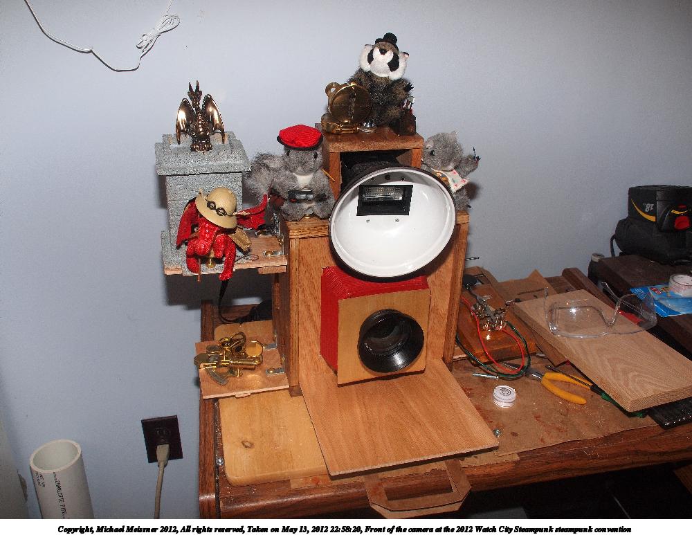 Picture #18: Front of the camera at the 2012 Watch City Steampunk steampunk convention #2 Small: 1000x773, 132,754 bytes (130K), (html file) Large: 4000x3000, 3,897,552 bytes (3.7M), (html file) Copyright, Michael Meissner 2012, All rights reserved Olympus E-P2 camera with Olympus-m43 14-150mm f/4.0-5.6 lens f/8.0, ISO 200, FL-36 flash (+0.33 flash compensation), 1/60 sec, 17.0mm, aperture priority, vivid color, SHQ, matrix metering, IS1 (All Direction Shake IS), noise reduction auto, noise filter low 35mm equivalent focal length 34.0mm Extra equipment used: Olympus FL-36 flash Programs used: crop, raw therapee Taken by Michael Meissner on May 13, 2012 22:58:20 Last modified on May 16, 2012 at 08:44 |