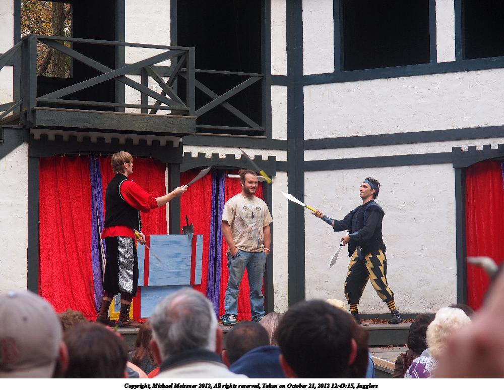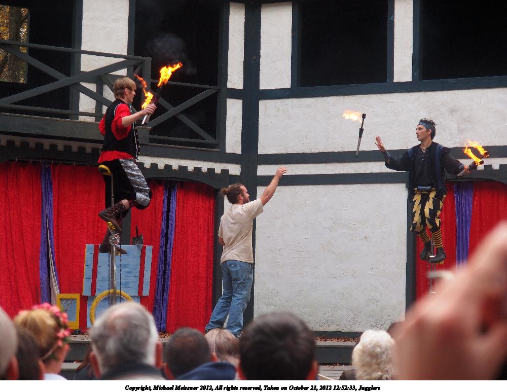 Picture #65: Jugglers #5 Small: 1000x773, 121,851 bytes (119K), (html file) Large: 4000x3000, 3,233,290 bytes (3.1M), (html file) Copyright, Michael Meissner 2012, All rights reserved Olympus E-5 camera with Olympus 14-54mm f/2.8-3.5 lens f/3.5, ISO 400, 1/400 sec, 52.0mm, shutter priority, vivid color, matrix metering, IS1 (All Direction Shake IS) 35mm equivalent focal length 104.0mm Programs used: crop, raw therapee Taken by Michael Meissner on October 21, 2012 12:52:33 Last modified on July 22, 2013 at 09:09 |