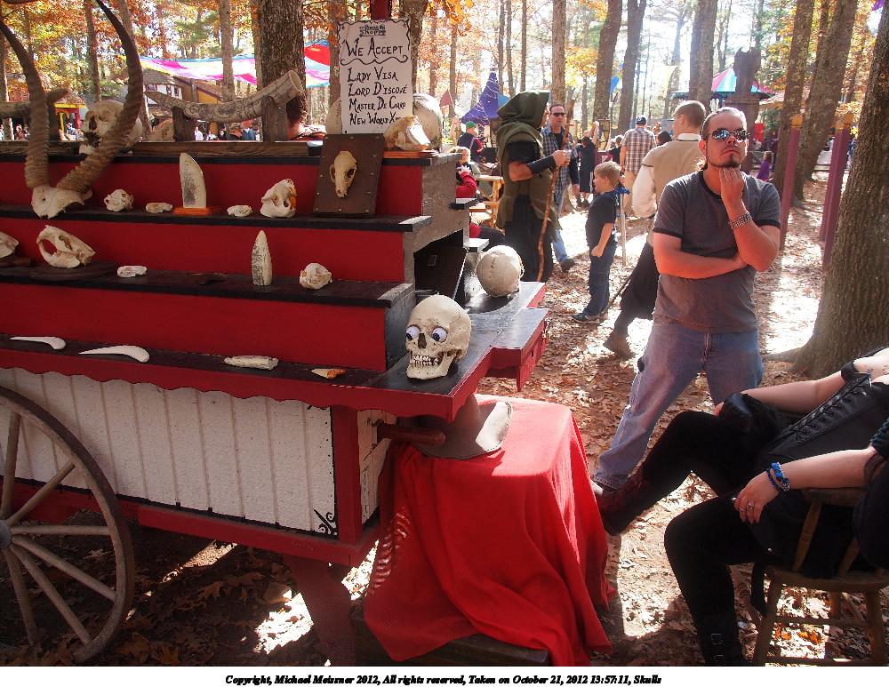 Picture #42: Skulls Small: 1000x773, 191,648 bytes (188K), (html file) Large: 4000x3000, 4,141,754 bytes (3.9M), (html file) Copyright, Michael Meissner 2012, All rights reserved Olympus E-5 camera with Olympus 14-54mm f/2.8-3.5 lens f/3.2, ISO 200, 1/100 sec, 14.0mm, auto mode, vivid color, matrix metering, IS1 (All Direction Shake IS) 35mm equivalent focal length 28.0mm Programs used: crop, raw therapee Taken by Michael Meissner on October 21, 2012 13:57:11 Last modified on July 22, 2013 at 09:22 |
