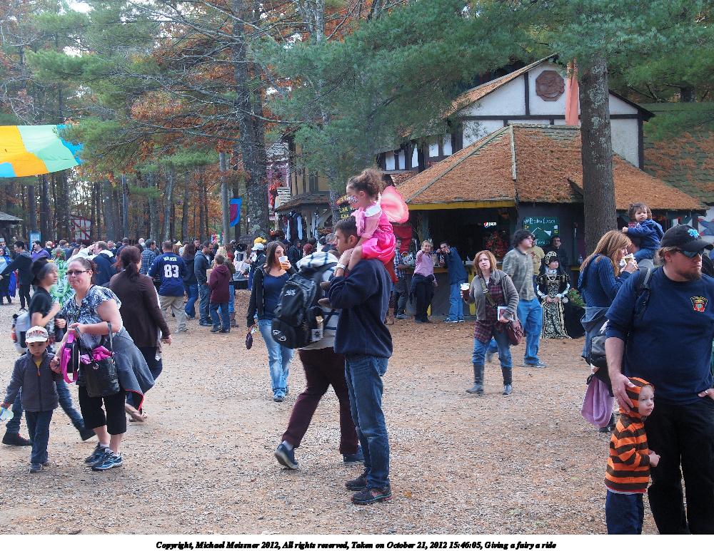 Picture #29: Giving a fairy a ride Small: 1000x773, 248,548 bytes (243K), (html file) Large: 4000x3000, 4,656,443 bytes (4.4M), (html file) Copyright, Michael Meissner 2012, All rights reserved Olympus E-5 camera with Olympus 14-54mm f/2.8-3.5 lens f/3.2, ISO 200, 1/80 sec, 25.0mm, auto mode, vivid color, matrix metering, IS1 (All Direction Shake IS) 35mm equivalent focal length 50.0mm Programs used: crop, raw therapee Taken by Michael Meissner on October 21, 2012 15:46:05 Last modified on July 22, 2013 at 09:28 |